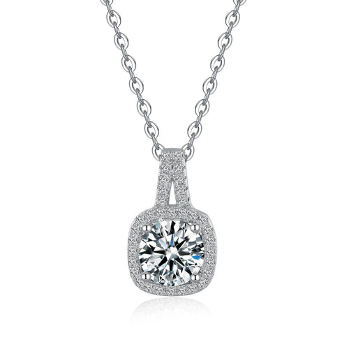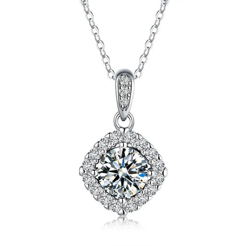 Girl Wedding Necklaces PT950 Platinum Engagement Moissanite Diamond 0.5/1CT Square Pendant Valentine's Day Women Birthday Gift -
