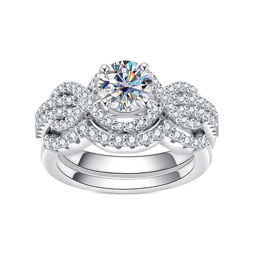 S925 Silver 0.8 Carat Moissanite Prong Setting Round Women Ring Set Engagement Fine Jewelry -