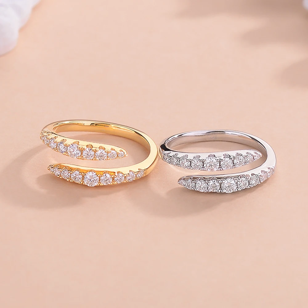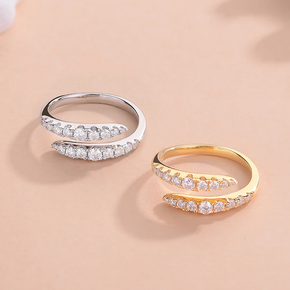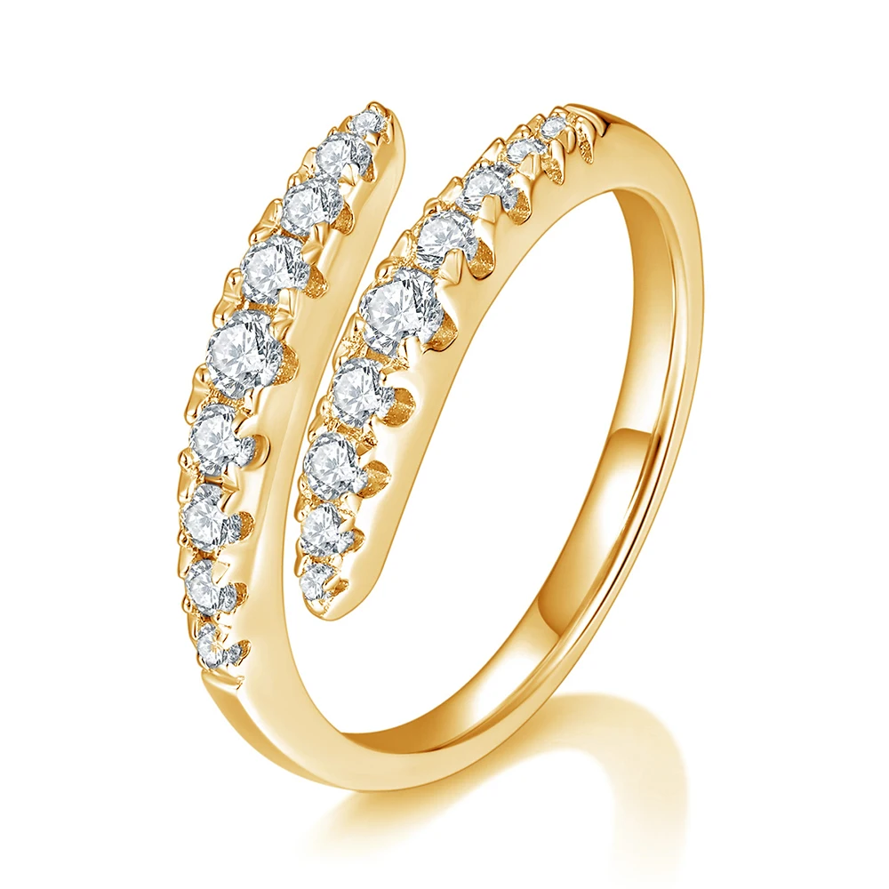 Crafted with precision, this 0.45ct D color moissanite ring showcases exceptional brilliance and clarity, rivaling traditional diamonds. Set in 100% S925 sterling silver and plated with 18K gold, it offers both durability and a luxurious finish. The double-opening design provides a secure, adjustable fit, making it an elegant choice for weddings or special occasions. Combining premium materials with expert craftsmanship, this ring delivers lasting beauty and timeless sophistication for discerning women.
