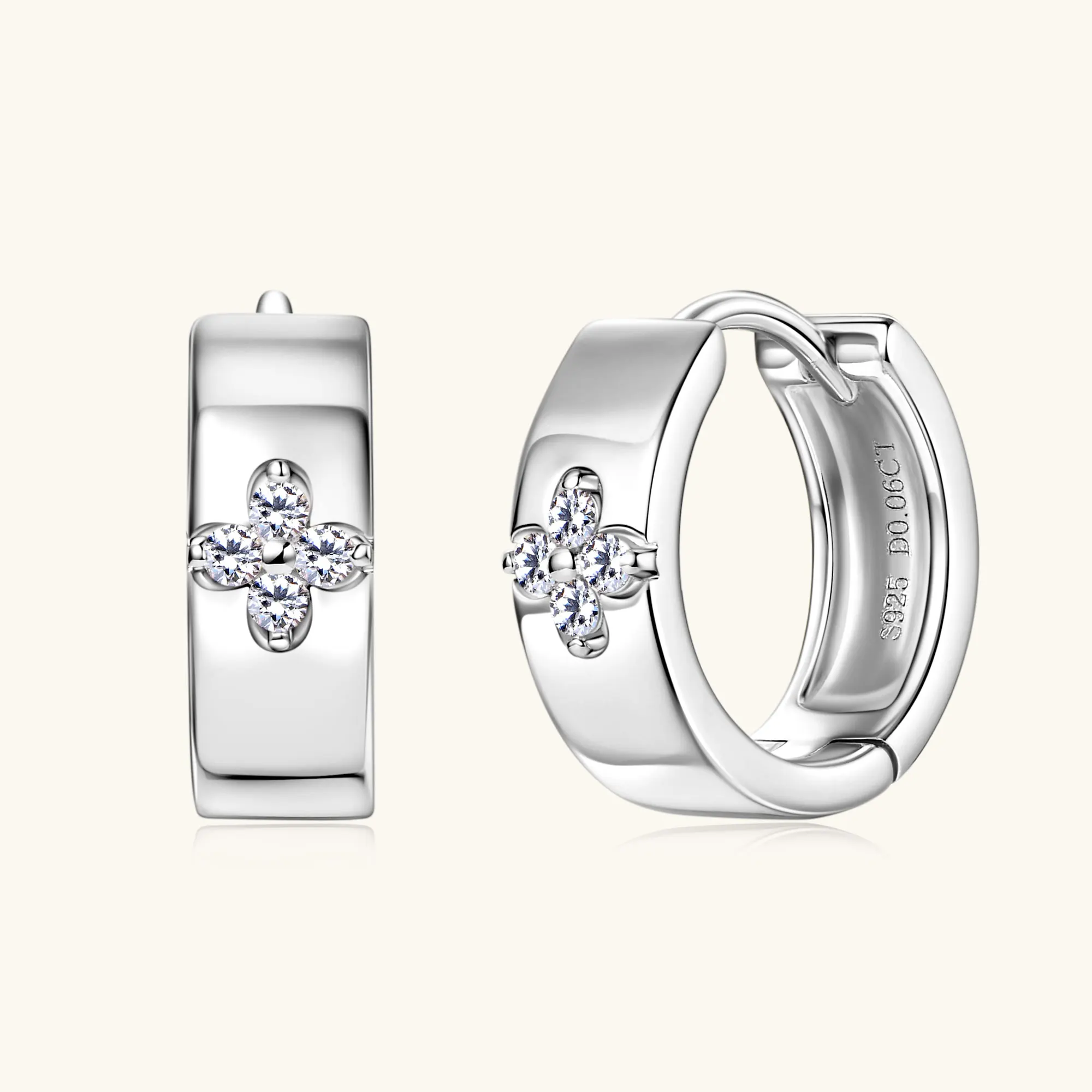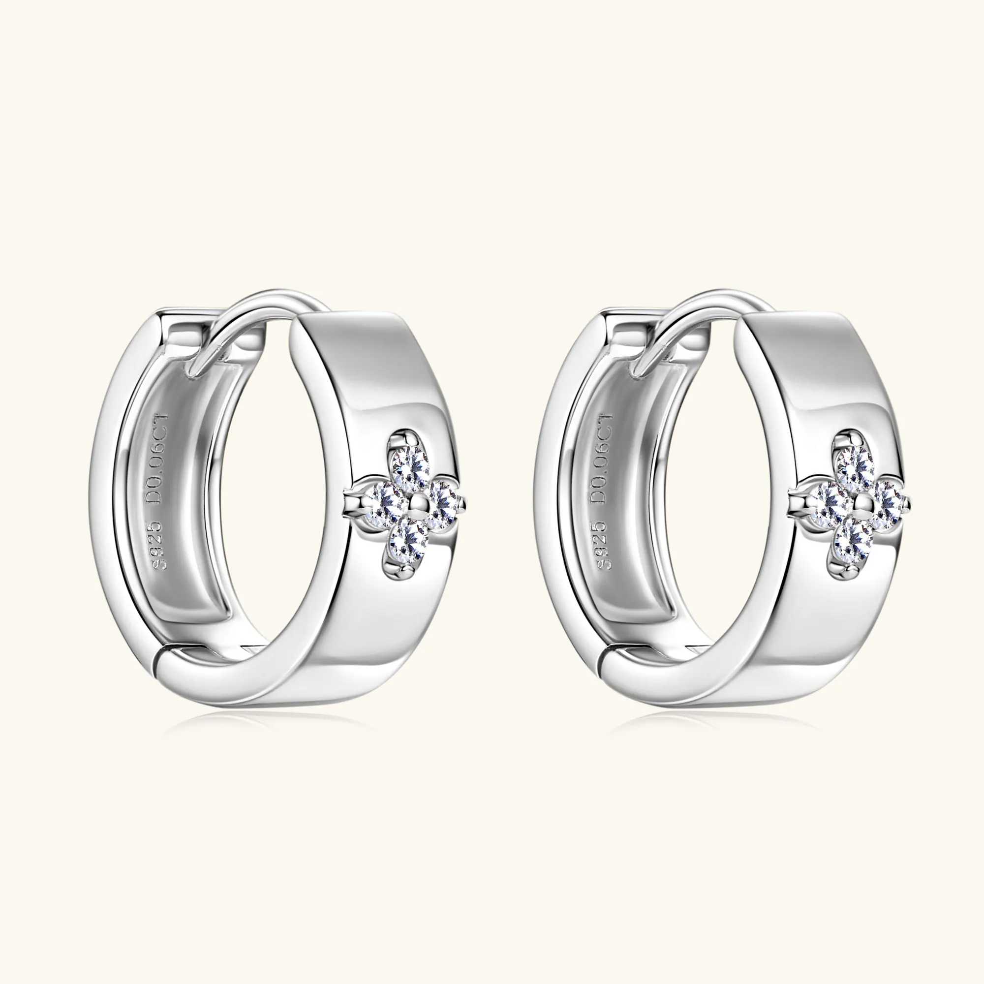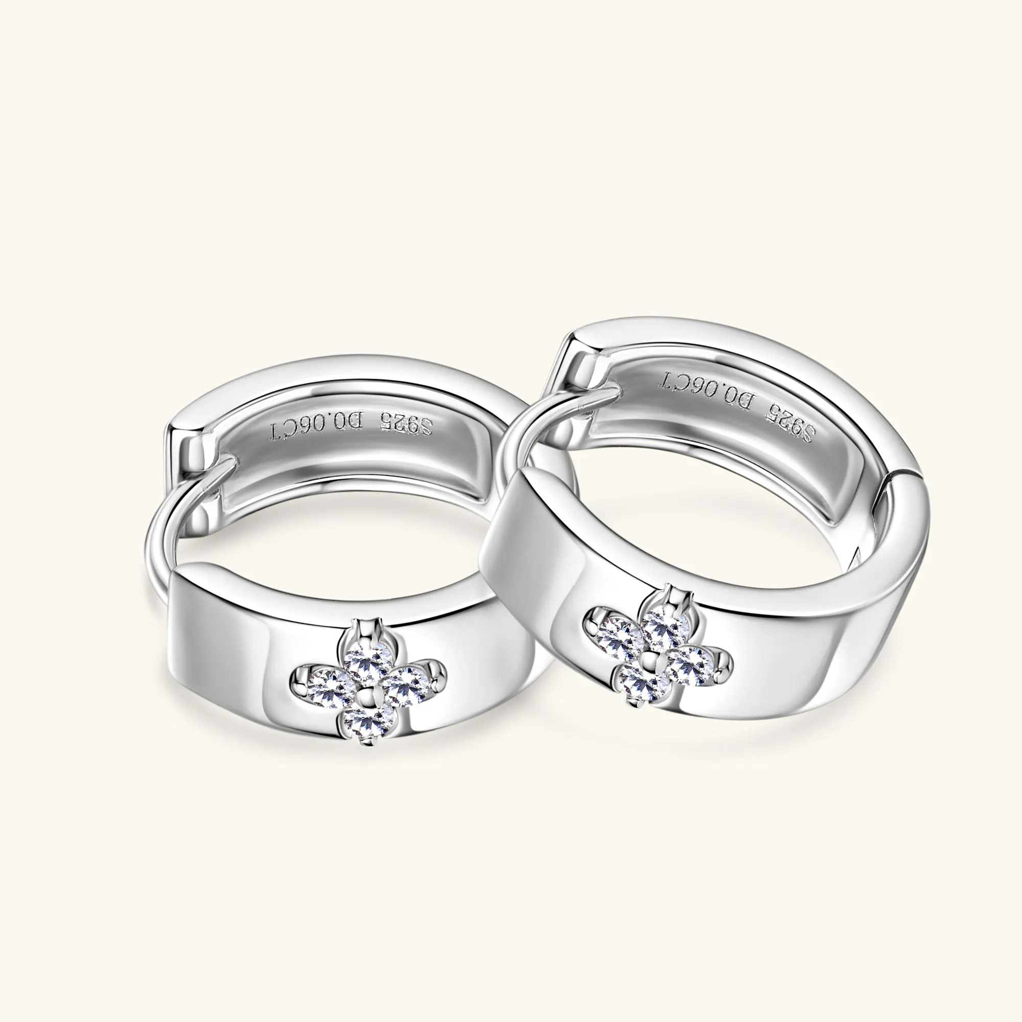Elevate your jewelry collection with these sophisticated moissanite hoop earrings, crafted from premium 925 sterling silver. Featuring 1.5mm full moissanite stones that rival the brilliance of natural diamonds, these lab-created gems offer exceptional sparkle without the premium price tag. The delicate clover design adds an elegant touch, making them versatile enough for everyday wear or special occasions. Moissanite's superior durability ensures your earrings maintain their radiance for years to come. Perfect for women and girls seeking timeless style with modern sophistication.