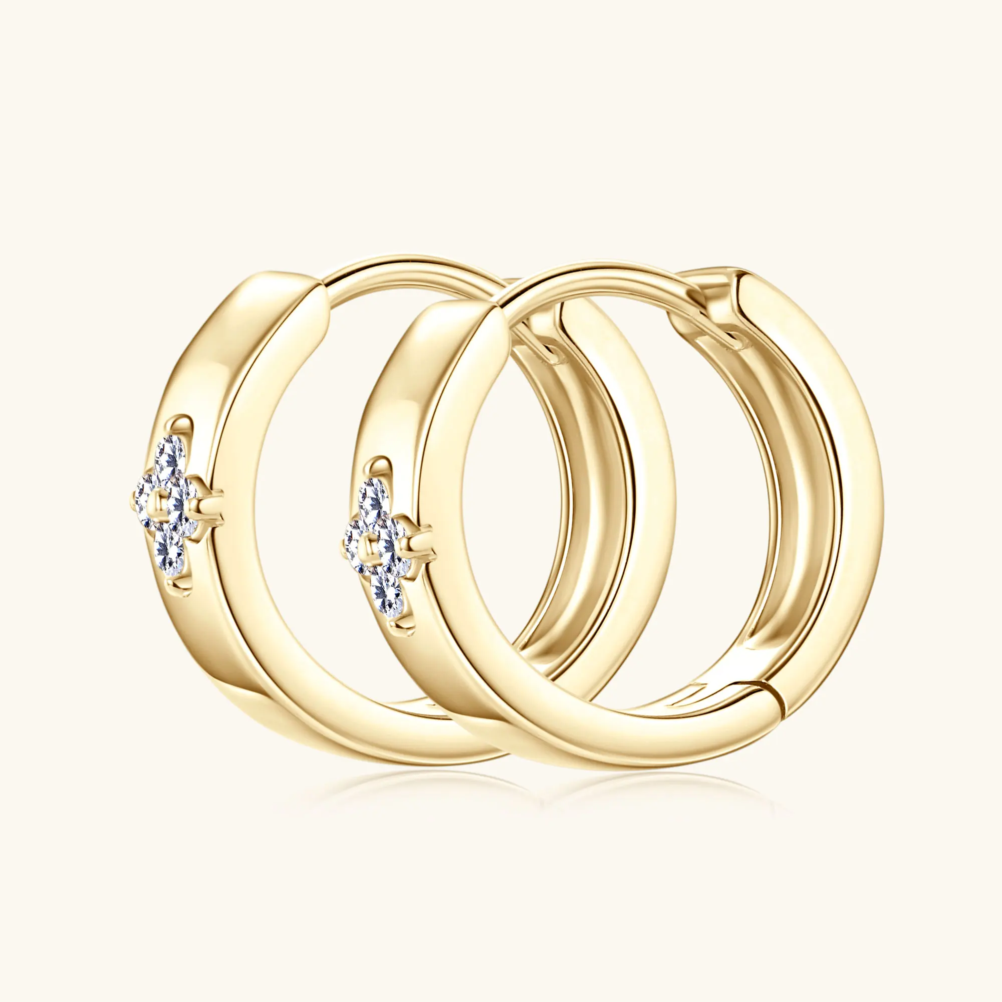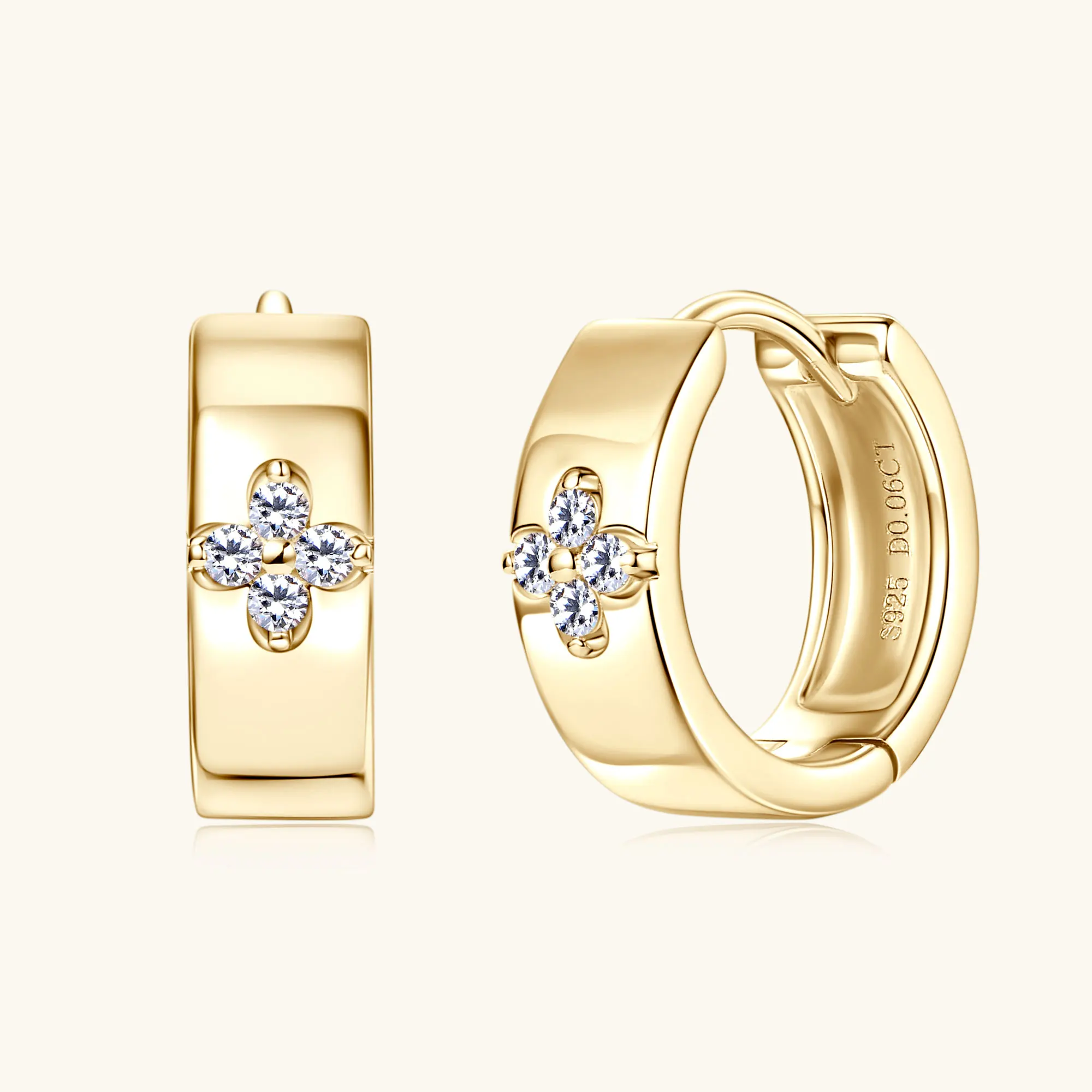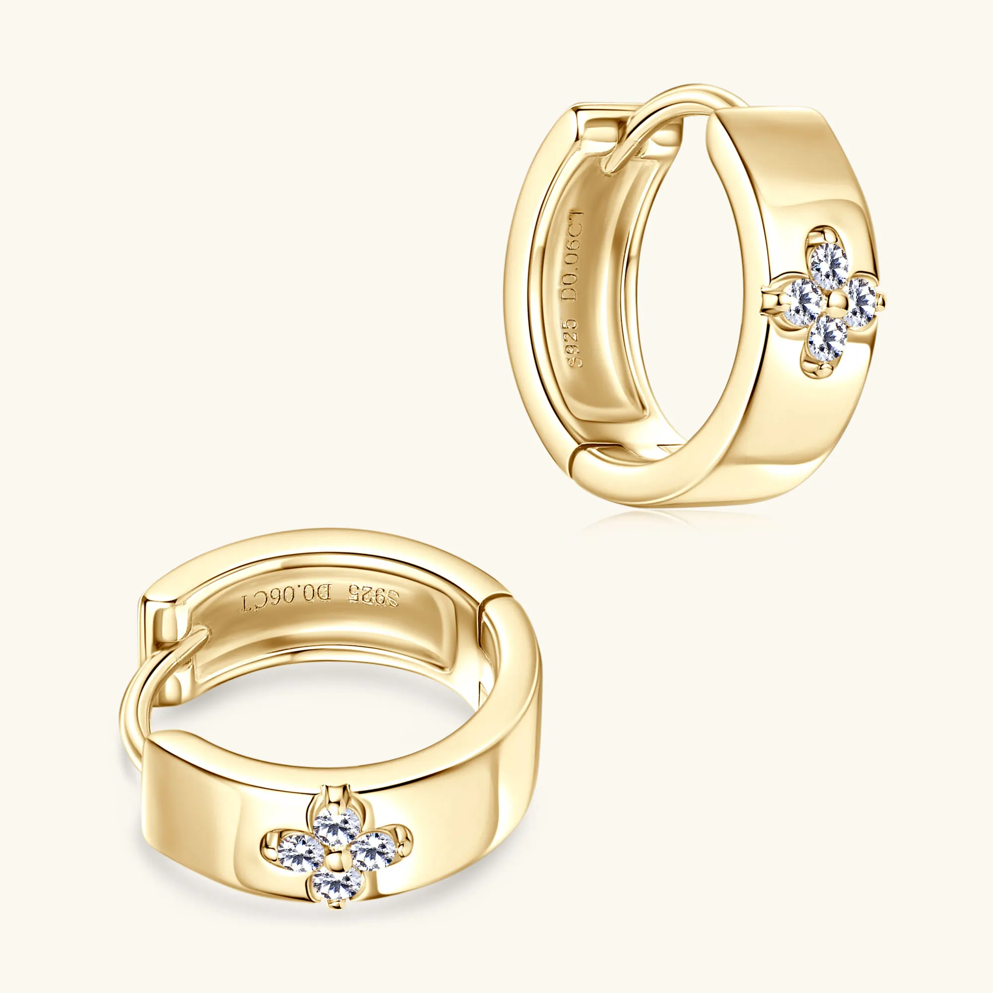 Elevate your jewelry collection with these sophisticated moissanite hoop earrings, crafted from premium 925 sterling silver. Featuring 1.5mm full moissanite stones that rival the brilliance of natural diamonds, these lab-created gems offer exceptional sparkle without the premium price tag. The delicate clover design adds an elegant touch, making them versatile enough for everyday wear or special occasions. Moissanite's superior durability ensures your earrings maintain their radiance for years to come. Perfect for women and girls seeking timeless style with modern sophistication.
