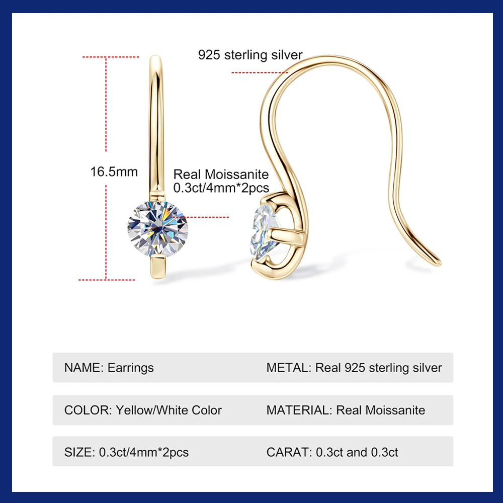 100% 925 Silver Piercing Drop Earrings For Women Plated 18K Gold Jewelry 0.3cttw Moissanite Earrings High Quality Gift
