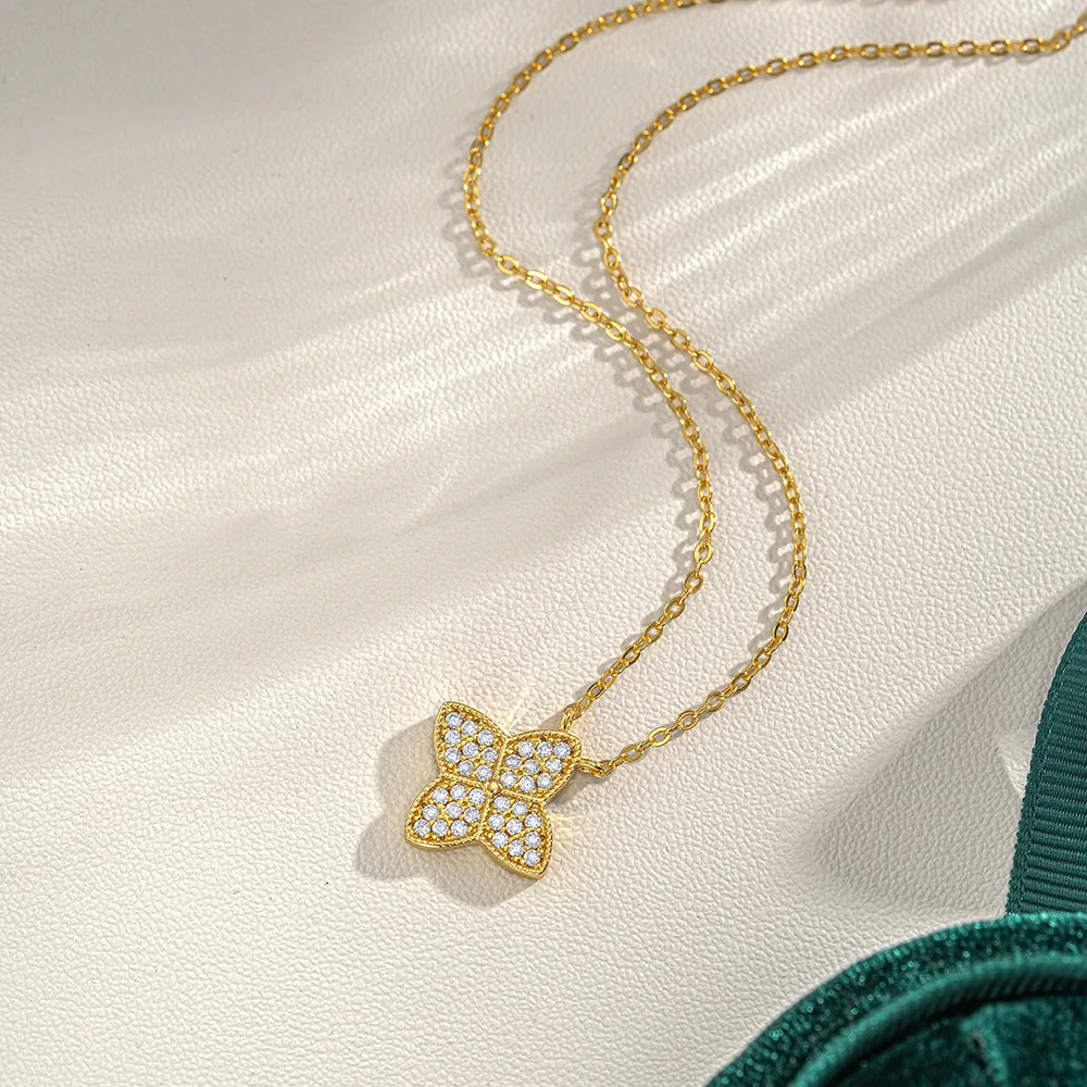 14k Gold Moissanite Necklace for Women Trendy Collarbone Chain Internet Celebrity Four-pointed Star Student Pendant Jewelry