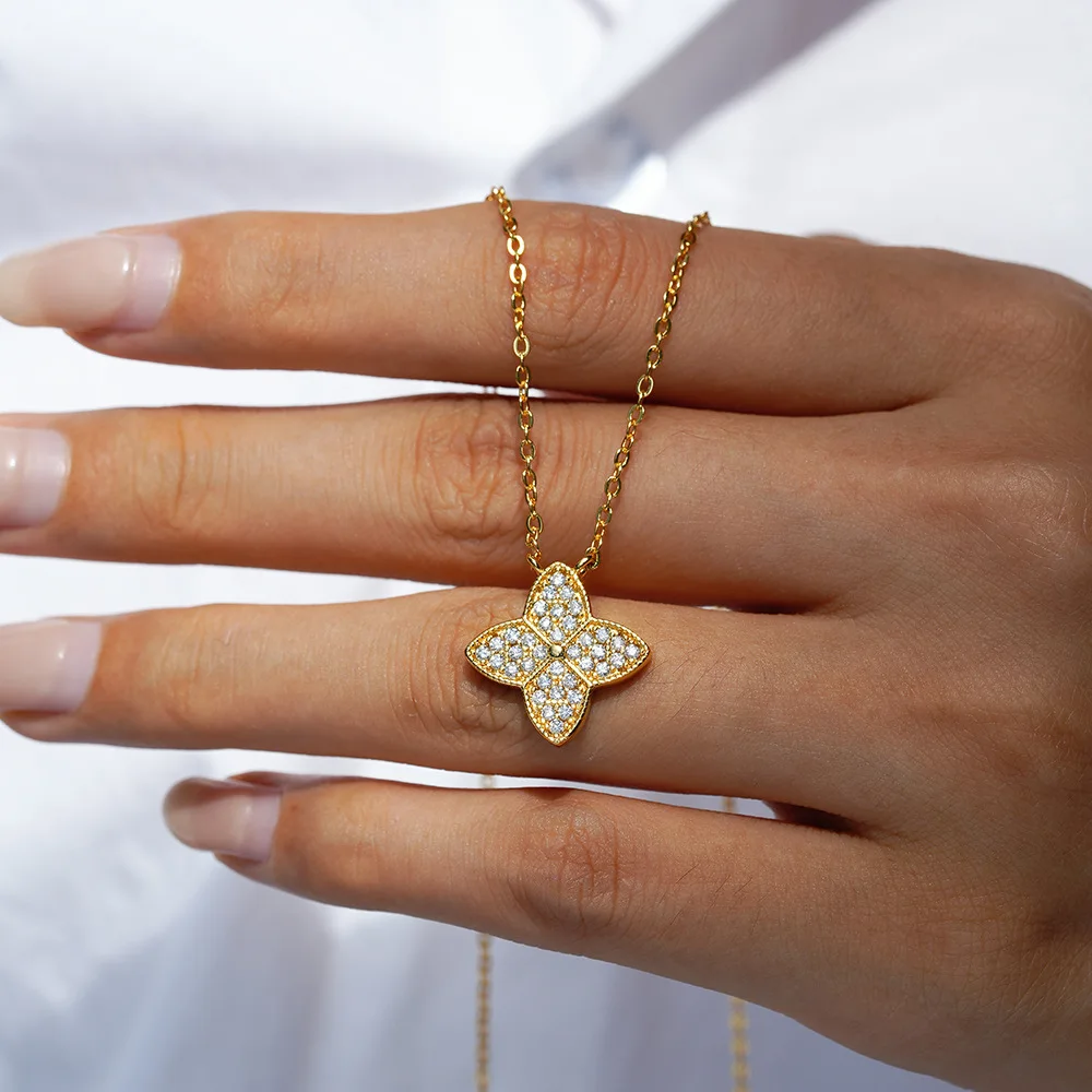 Make a bold statement with this striking 14k gold moissanite necklace that refuses to blend in. The geometric four-pointed star pendant commands attention at the collarbone, delivering the kind of sparkle that turns heads and sparks conversations. Crafted with lab-created moissanite, this piece combines fearless design with uncompromising brilliance—proving you don't need to sacrifice edge for quality. Perfect for trendsetters who demand jewelry as daring as their style, this pendant works solo for maximum impact or layered for an even more audacious look. Own your presence. This is jewelry for those who lead, not follow.