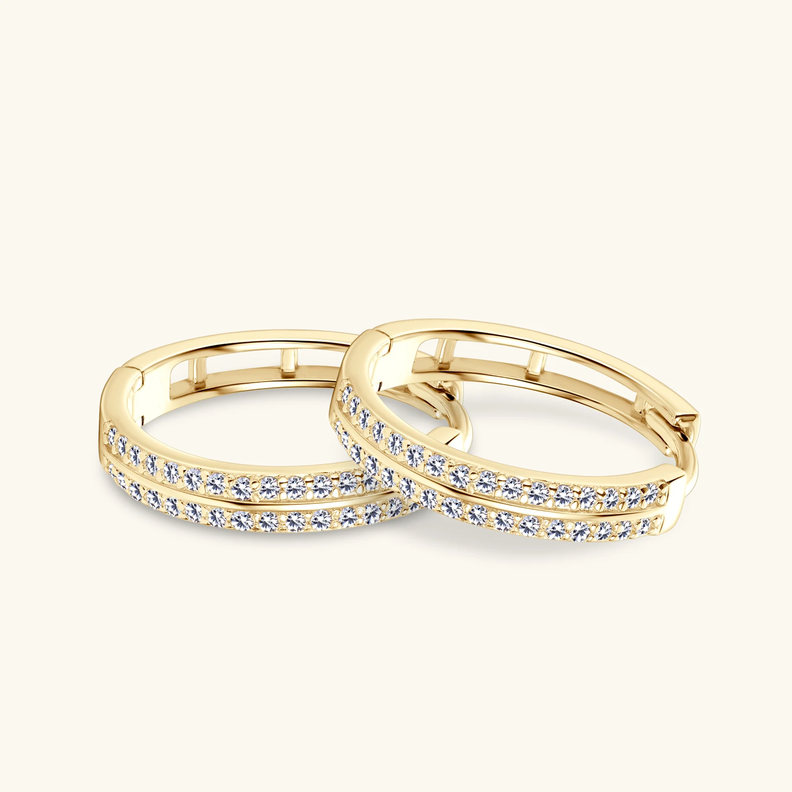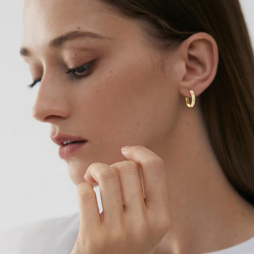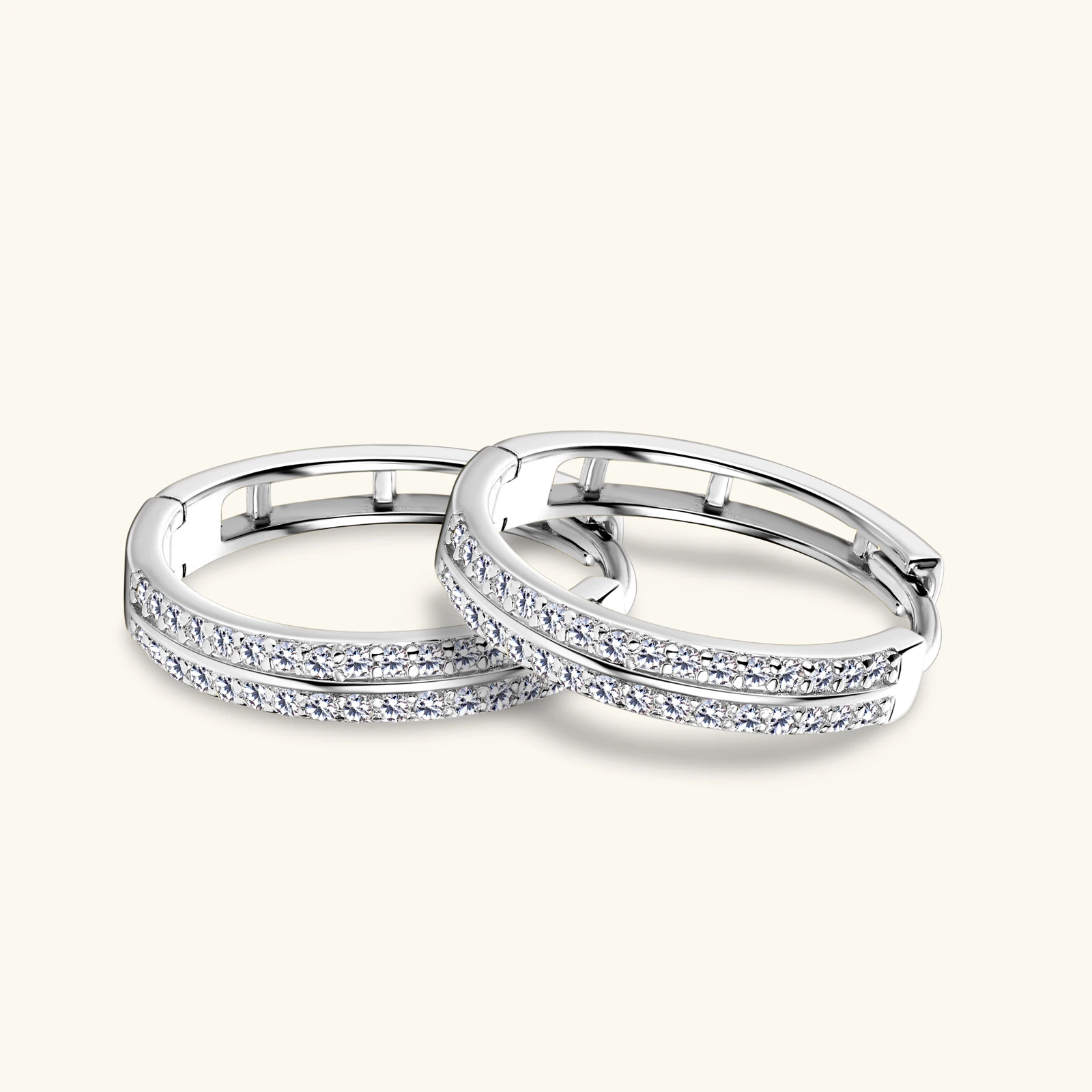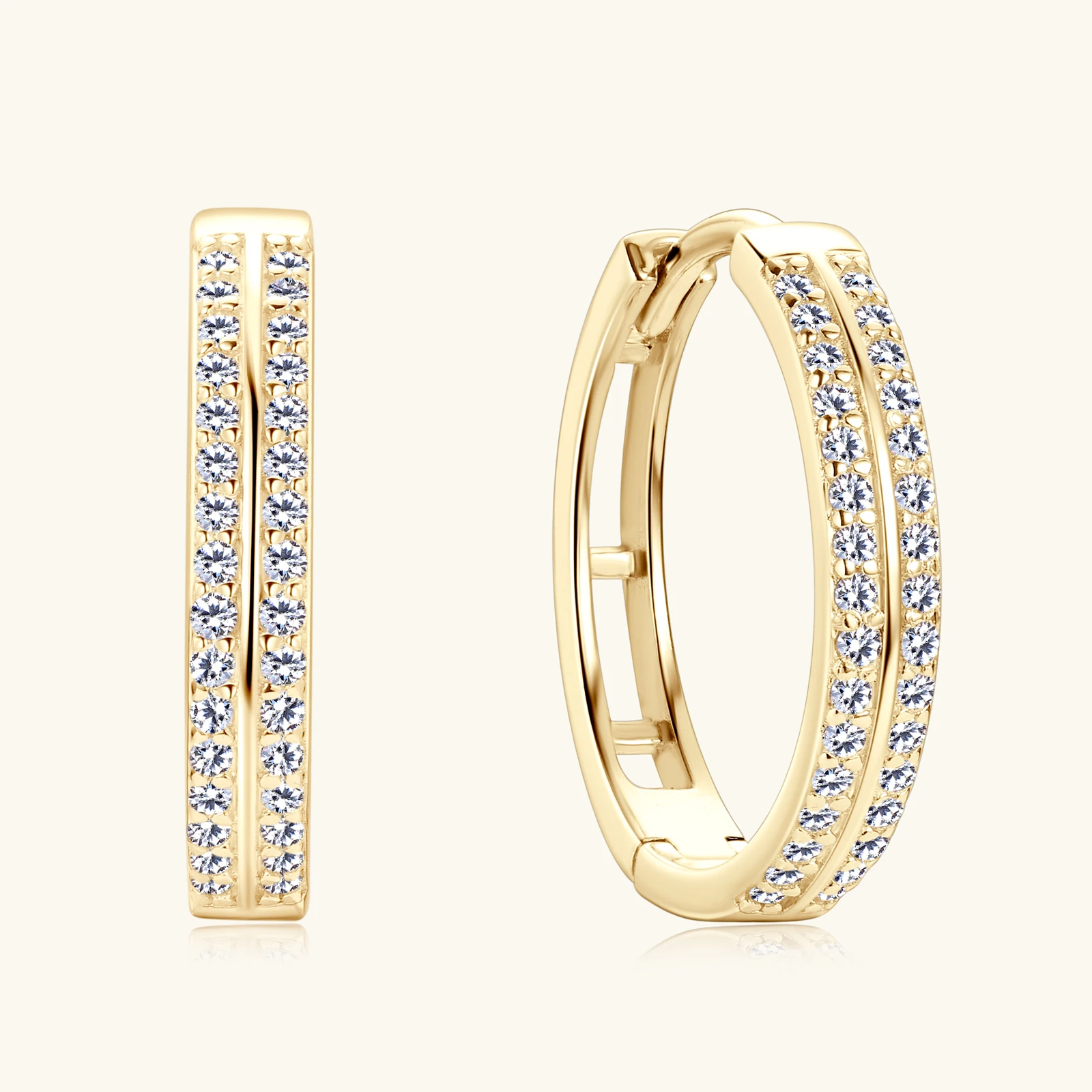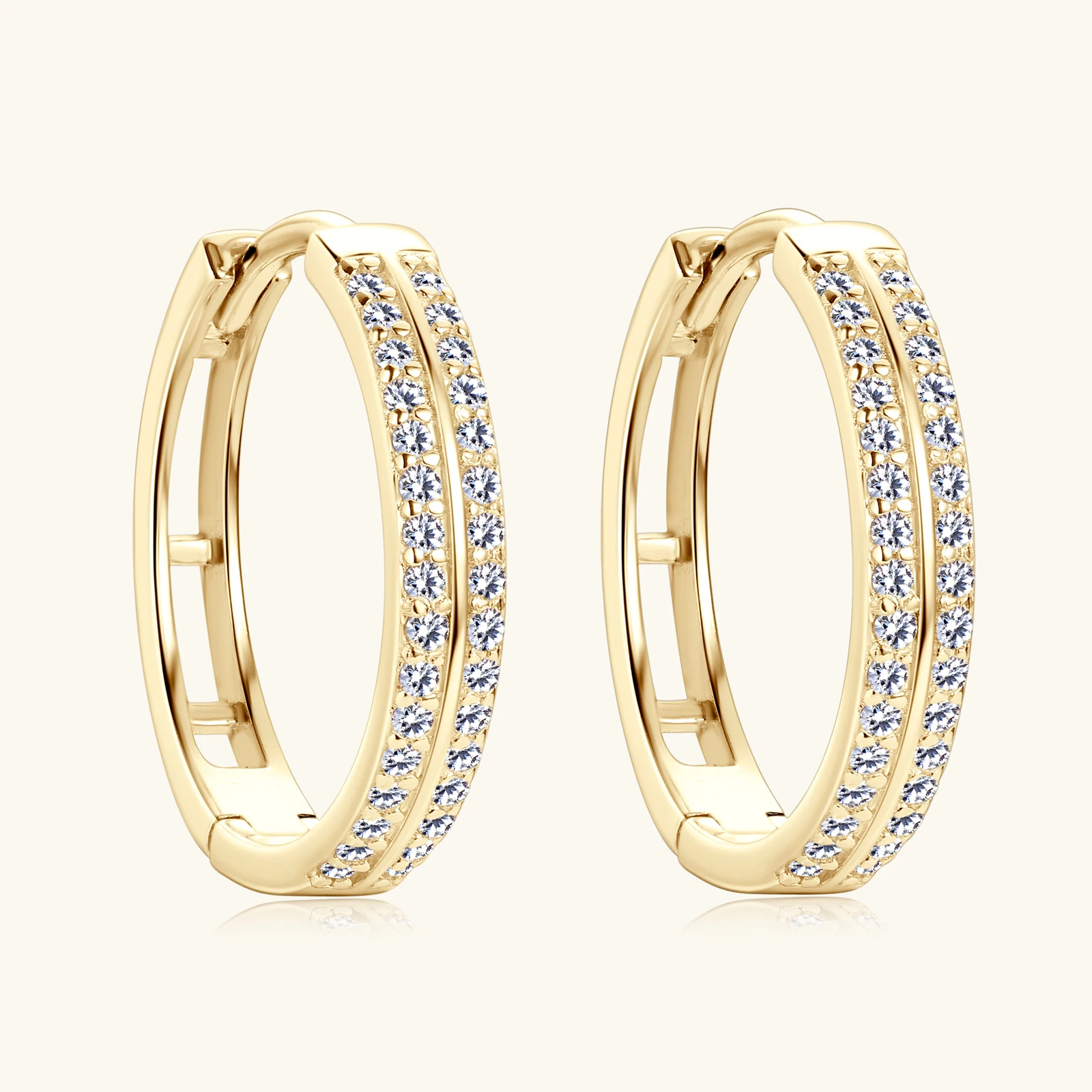 These elegant hoop earrings showcase genuine S925 sterling silver with a lustrous 14K gold plating that resists tarnishing and fading. Set with premium moissanite stones, they deliver exceptional brilliance and fire comparable to diamonds, without the premium price tag. The refined hoop design offers versatility across multiple occasions and styling preferences. Built to withstand daily wear while maintaining their sophisticated appearance, these pieces exemplify fine jewelry craftsmanship. An excellent choice for those seeking quality materials, lasting beauty, and a timeless aesthetic that transcends fleeting fashion cycles.