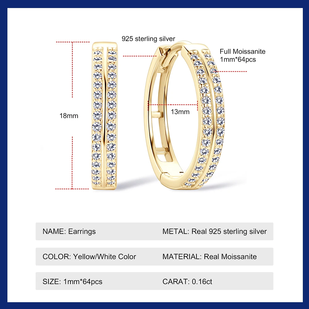 14K Gold Plated Hoop Earrings for Women Real S925 Sterling Silver Moissanite Diamond Earrings Trend Fine Jewelry Gift