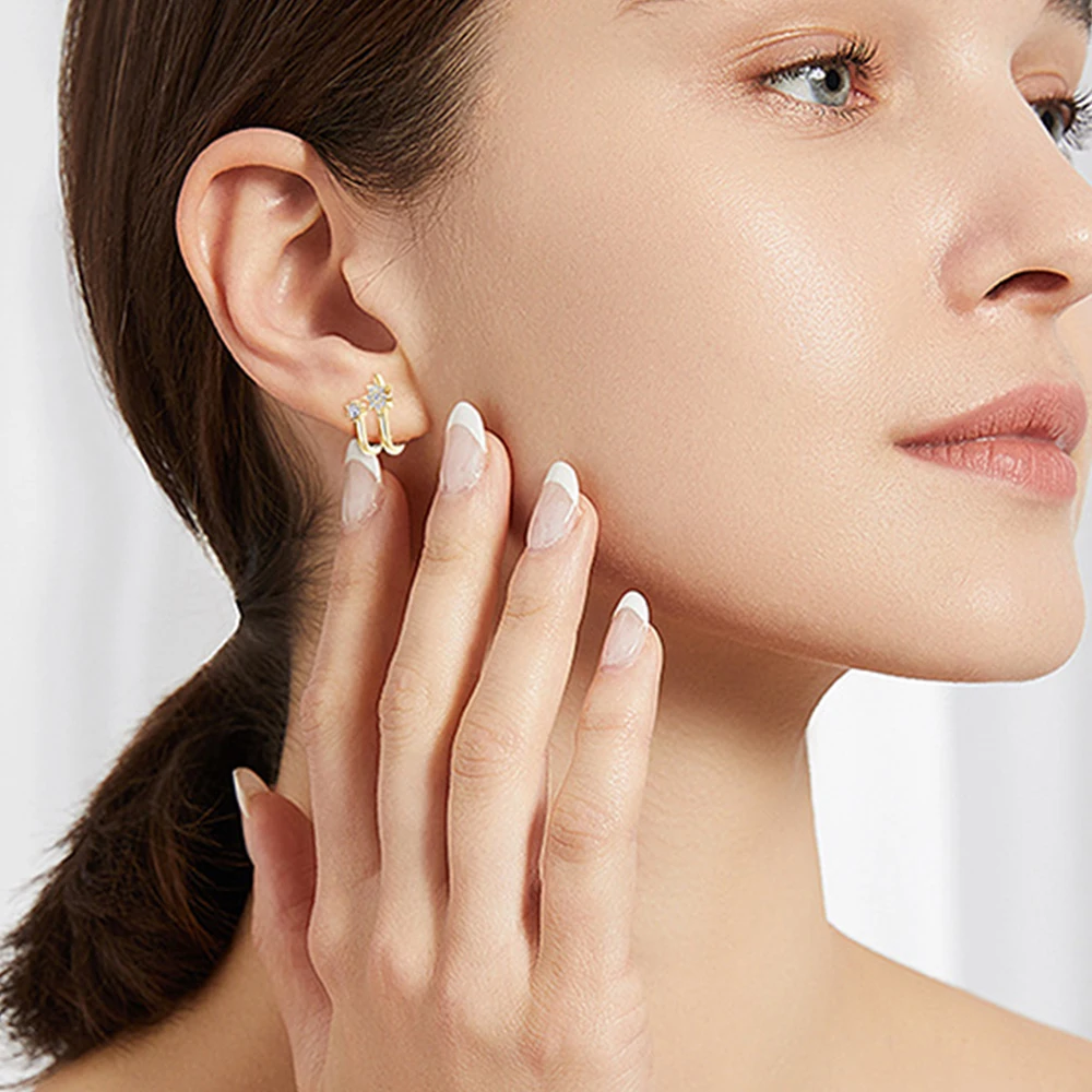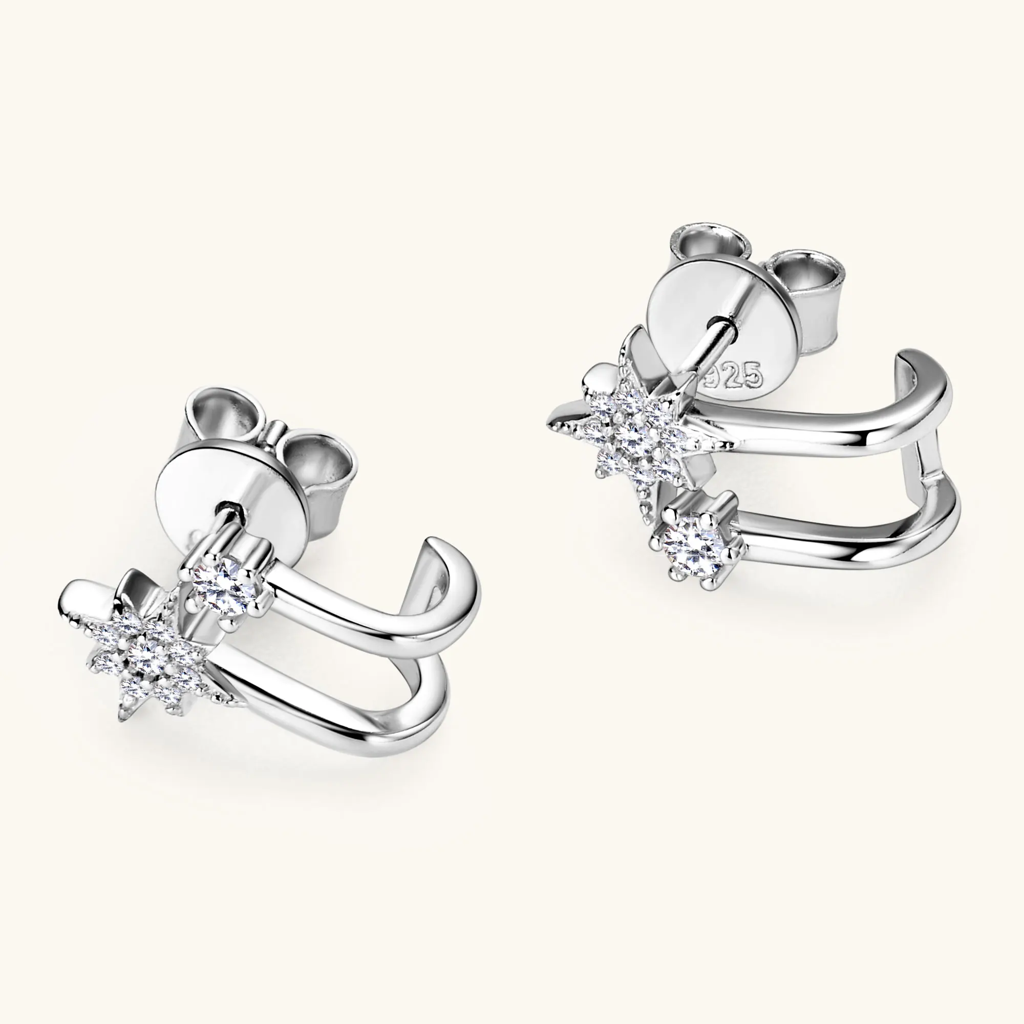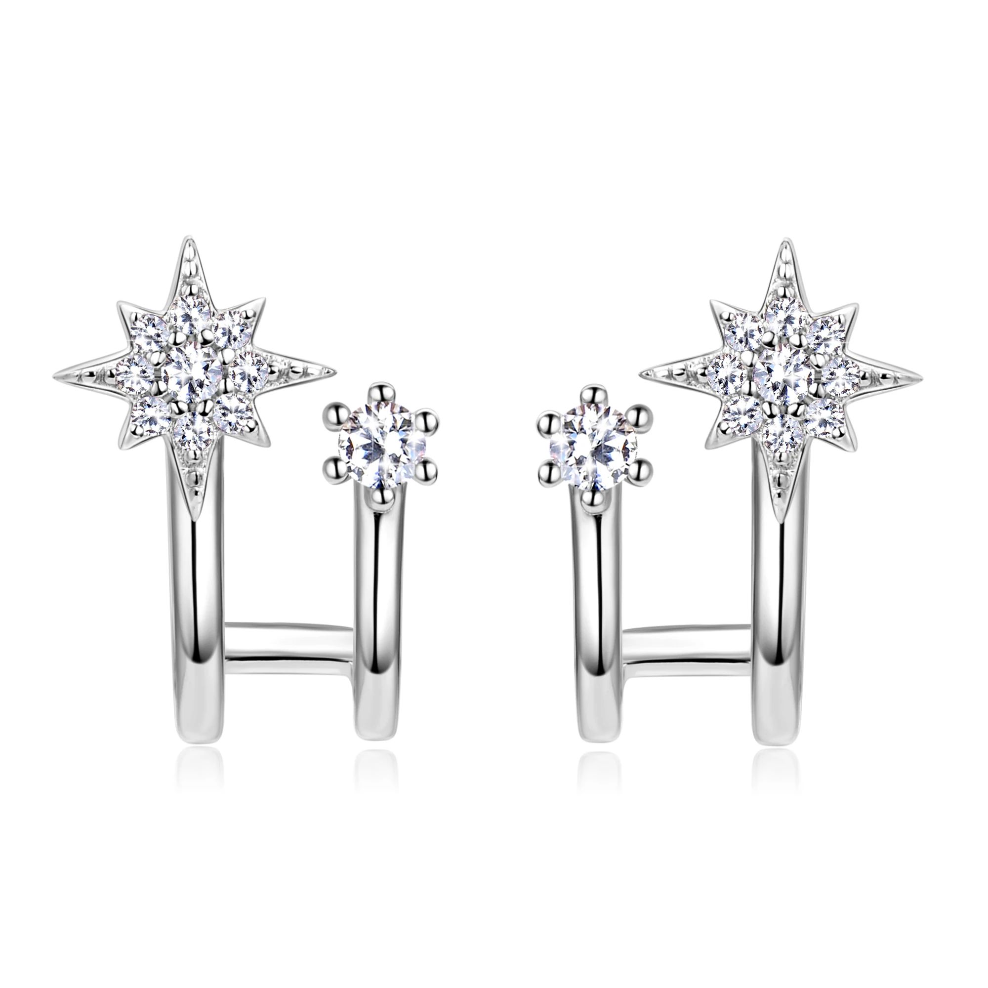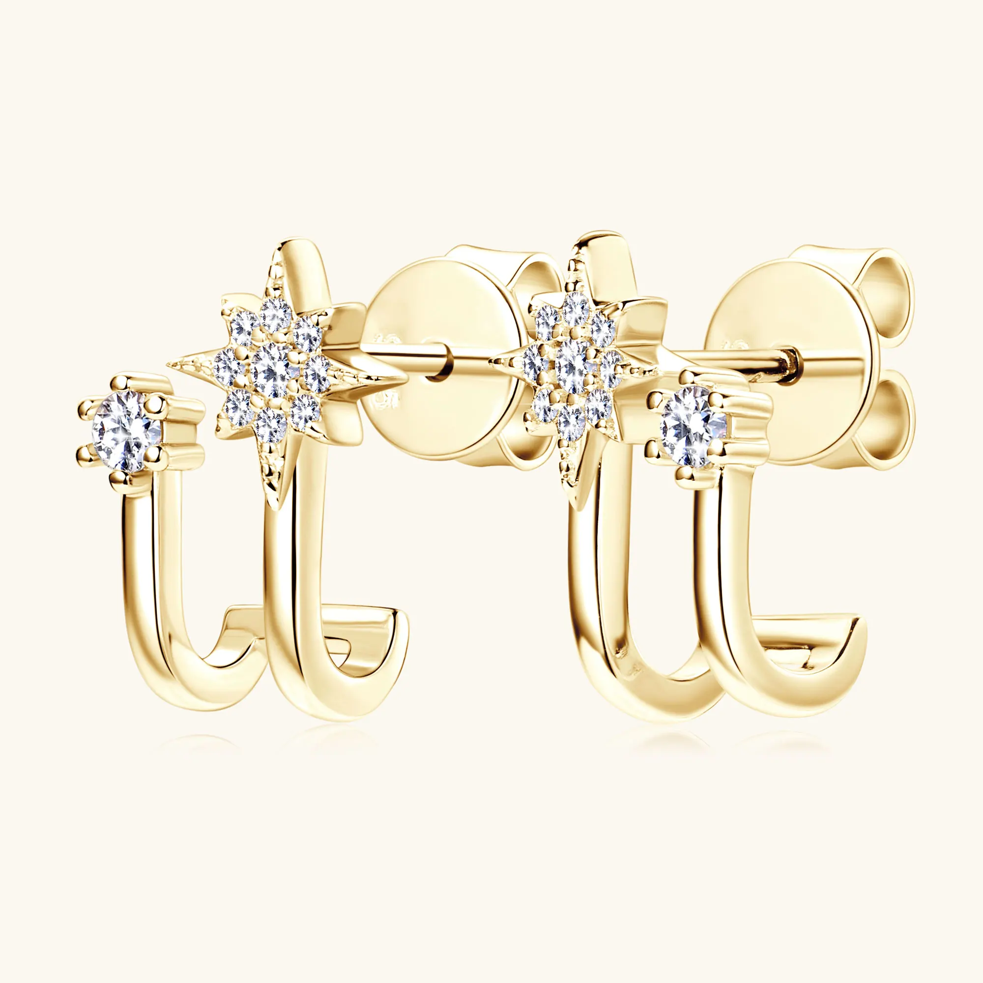 Elevate your everyday elegance with these sophisticated moissanite star earrings, crafted from premium S925 sterling silver and finished with lustrous 14K gold plating. Each dainty stud features brilliant moissanite stones that capture and reflect light beautifully, offering diamond-like sparkle at a fraction of the cost. The timeless star design complements any style, from casual to formal occasions. Hypoallergenic sterling silver ensures comfort for sensitive ears, while the secure piercing posts provide reliable wear. Perfect as a personal indulgence or a meaningful gift for the woman who appreciates refined, understated luxury.