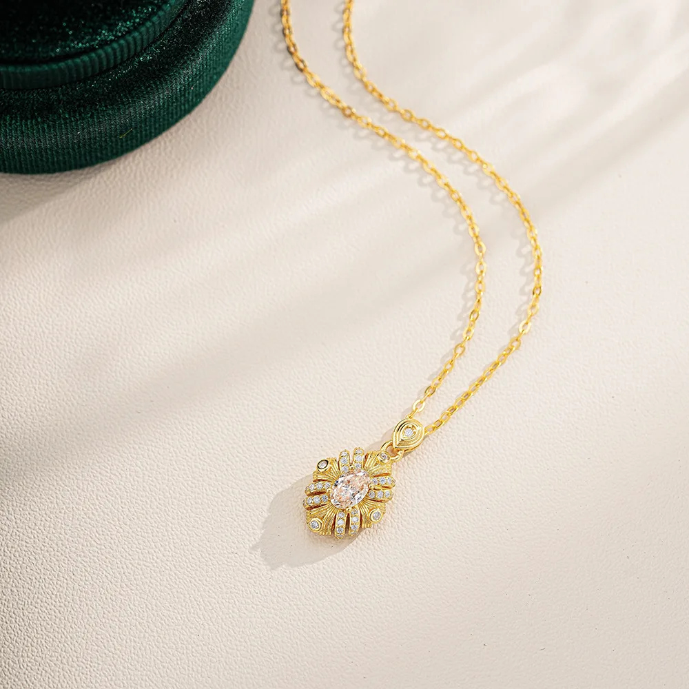 Elevate your jewelry collection with this stunning 18k gold necklace, featuring a radiant 1-carat diamond Bauhinia pendant that captures light with mesmerizing brilliance. The delicate sunflower design combines timeless elegance with modern sophistication, making it an ideal choice for weddings, anniversaries, or everyday luxury. Crafted with precision and adorned with flashing moissanite accents, this lightweight pendant offers exceptional sparkle without compromising comfort. Perfect for the discerning woman who appreciates fine craftsmanship and refined beauty.
