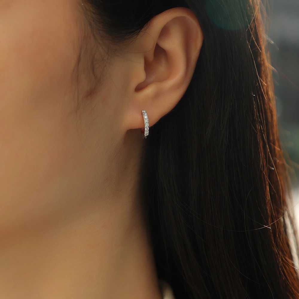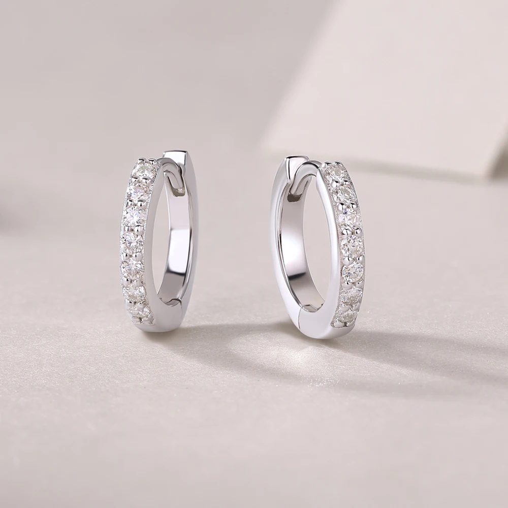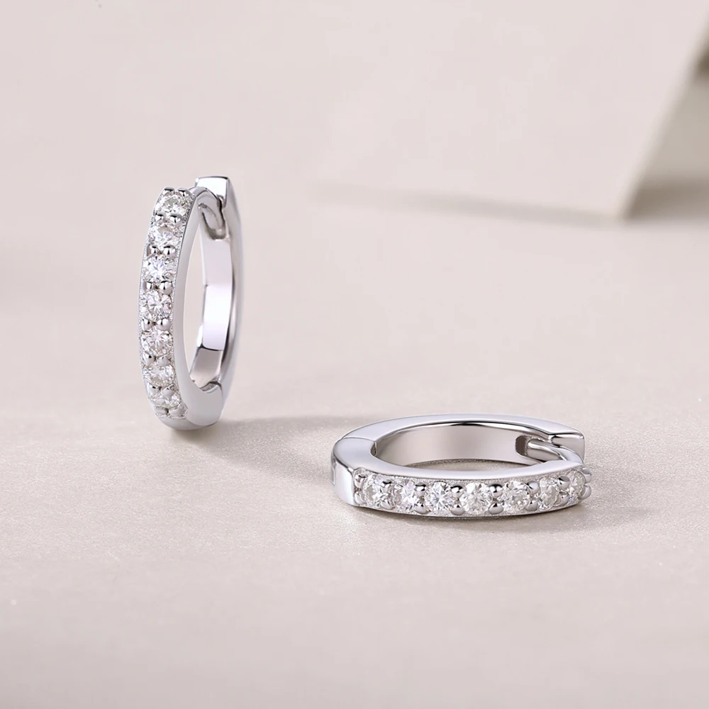 These moissanite hoop earrings represent a refined choice for discerning jewelry enthusiasts. Constructed from 925 sterling silver with 18K gold plating, they offer both aesthetic appeal and structural integrity. Moissanite stones provide exceptional light refraction and durability, making them a sophisticated alternative to traditional gemstones. The classic hoop silhouette ensures versatility across various settings and personal styles. Ideal for marking significant milestones or enhancing your everyday collection, these earrings deliver professional-grade quality with hypoallergenic properties. The combination of precious metals and lab-created stones creates a piece that balances luxury with practical longevity.