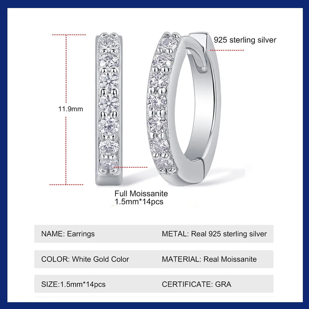 18K Plated 925 Sterling Silver Moissanite Hoop Earrings For Women High Quality Jewelry Anniversary Gift