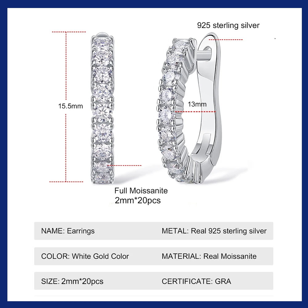 18K Plated Moissanite Earrings for Women Original Certified 925 Sterling Silver Hoop Earrings Minimalist Trendy Piercing Jewelry