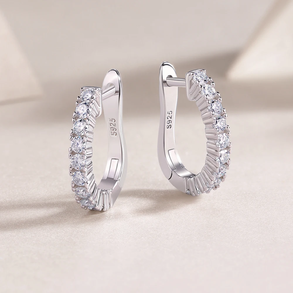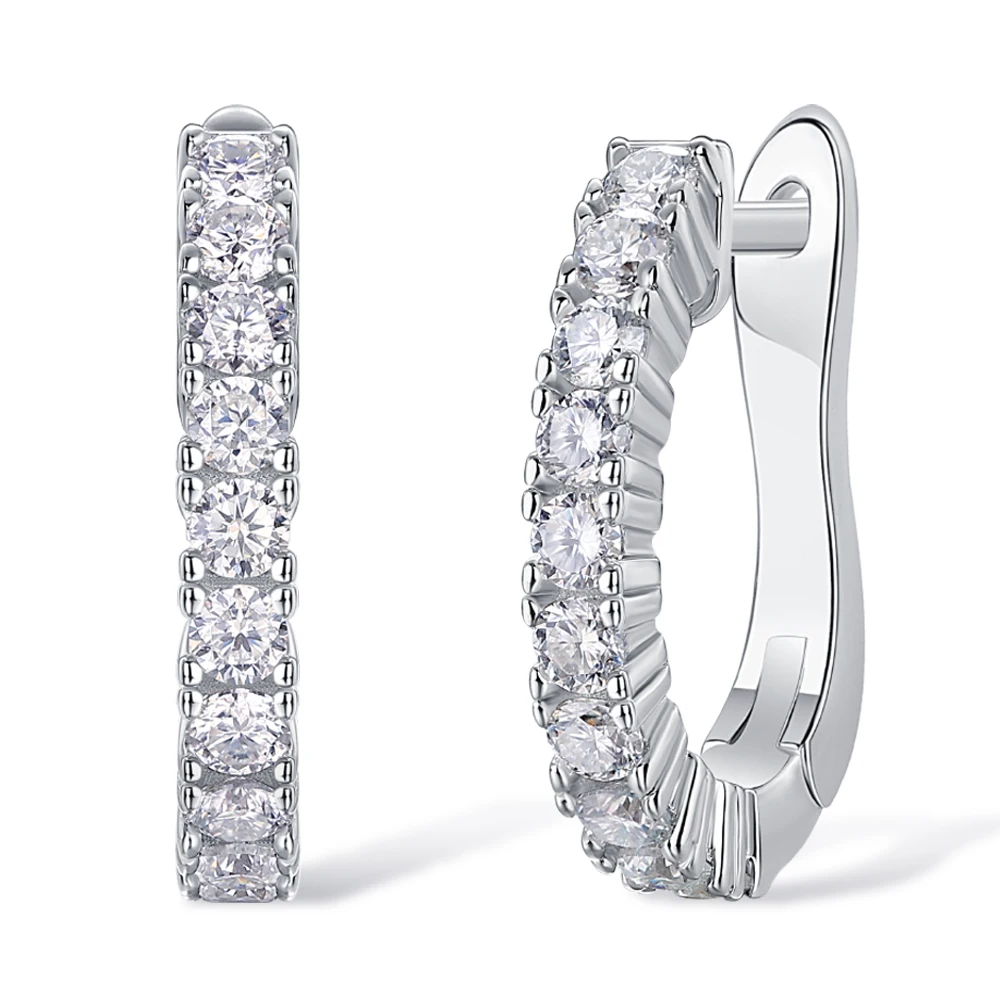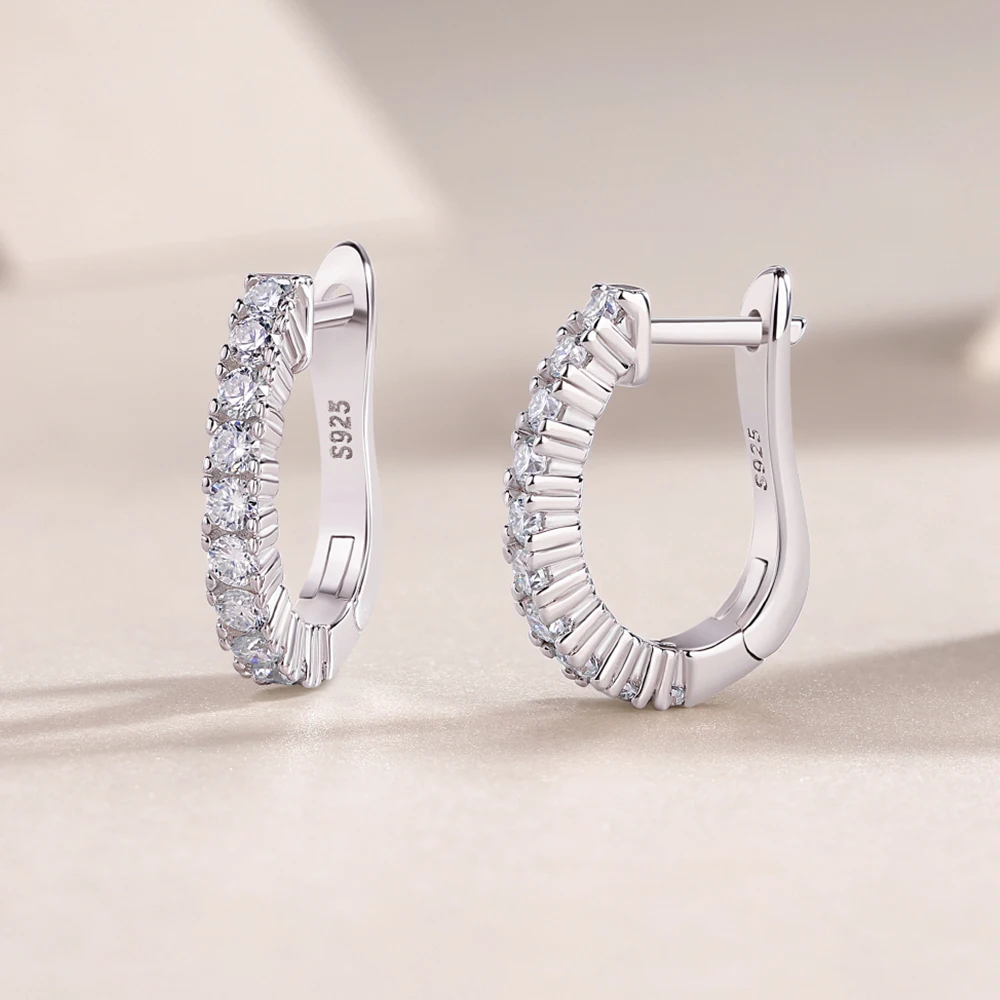 Elevate your everyday elegance with these certified 925 sterling silver hoop earrings, featuring lab-created moissanite stones with exceptional brilliance. The 18K gold plating delivers a luxurious finish that resists tarnishing, while the minimalist design complements any style—from casual to sophisticated. Perfect for those seeking timeless jewelry that combines durability with contemporary appeal. Ideal for pierced ears and suitable for sensitive skin. A versatile investment piece that transitions seamlessly from day to night.