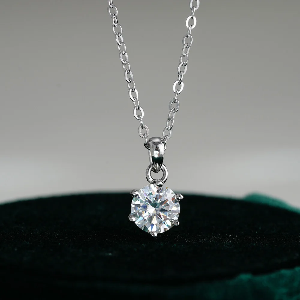This refined pendant showcases a stunning moissanite center stone available in 1ct, 2ct, or 3ct options, nestled within a diamond cluster setting. Crafted from premium 18k white gold and platinum Pt950, this piece delivers exceptional brilliance and longevity. Moissanite's superior hardness and optical properties make it an excellent alternative to traditional diamonds, offering remarkable clarity and sparkle. The intricate halo design amplifies light reflection, creating a captivating focal point. Perfect for those seeking luxury fine jewelry with versatile appeal, this statement necklace transitions seamlessly from formal events to refined everyday wear.
