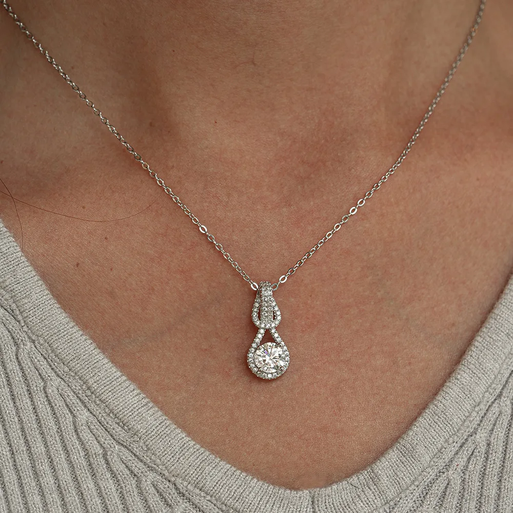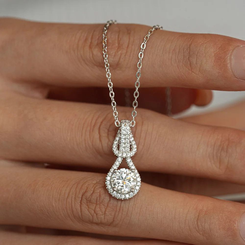Make a radiant statement with this exquisite 18k white gold pendant necklace, showcasing a luminous 1-carat moissanite stone that rivals traditional diamonds in brilliance. The sophisticated interlocking design, reinforced with Pt950 platinum, ensures lasting quality and refined aesthetics. Moissanite's exceptional durability means your pendant withstands daily wear while maintaining its stunning sparkle. This versatile piece transitions effortlessly from casual moments to special occasions, offering you a jewelry investment that feels both luxurious and accessible. Celebrate your unique style with confidence and grace.