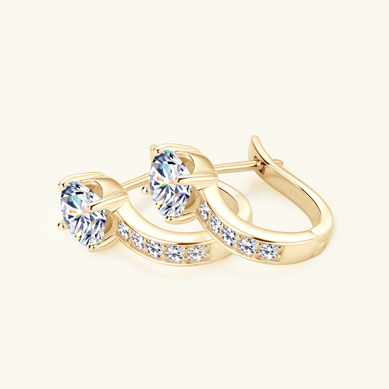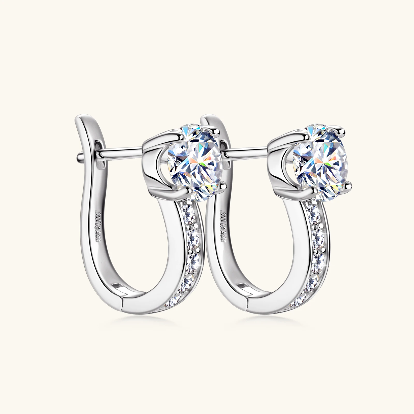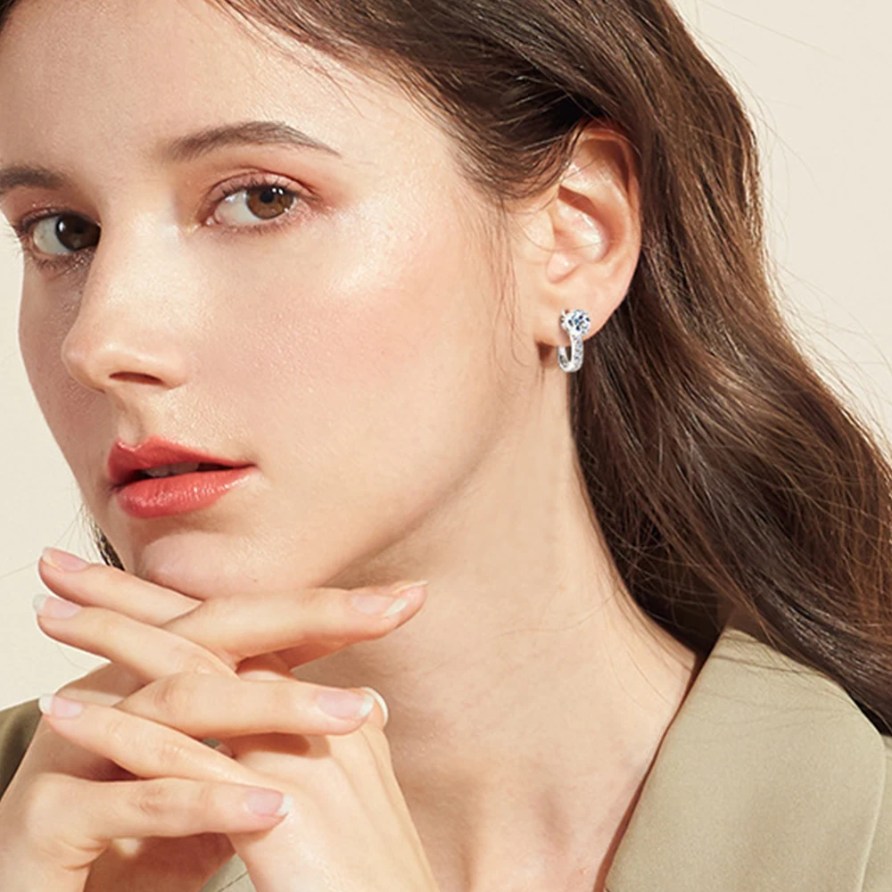 Experience refined elegance with these 1ct moissanite hoop earrings, engineered for those who appreciate fine jewelry without compromise. Each 6.5mm stone achieves D color and VVS1 clarity grades, delivering exceptional light performance and transparency. Moissanite's superior hardness ensures lasting brilliance through years of wear, while the certified 925 sterling silver setting provides authentic luxury and durability. These sophisticated hoops transition seamlessly from professional settings to evening occasions, offering versatile style backed by genuine certification and expert craftsmanship.