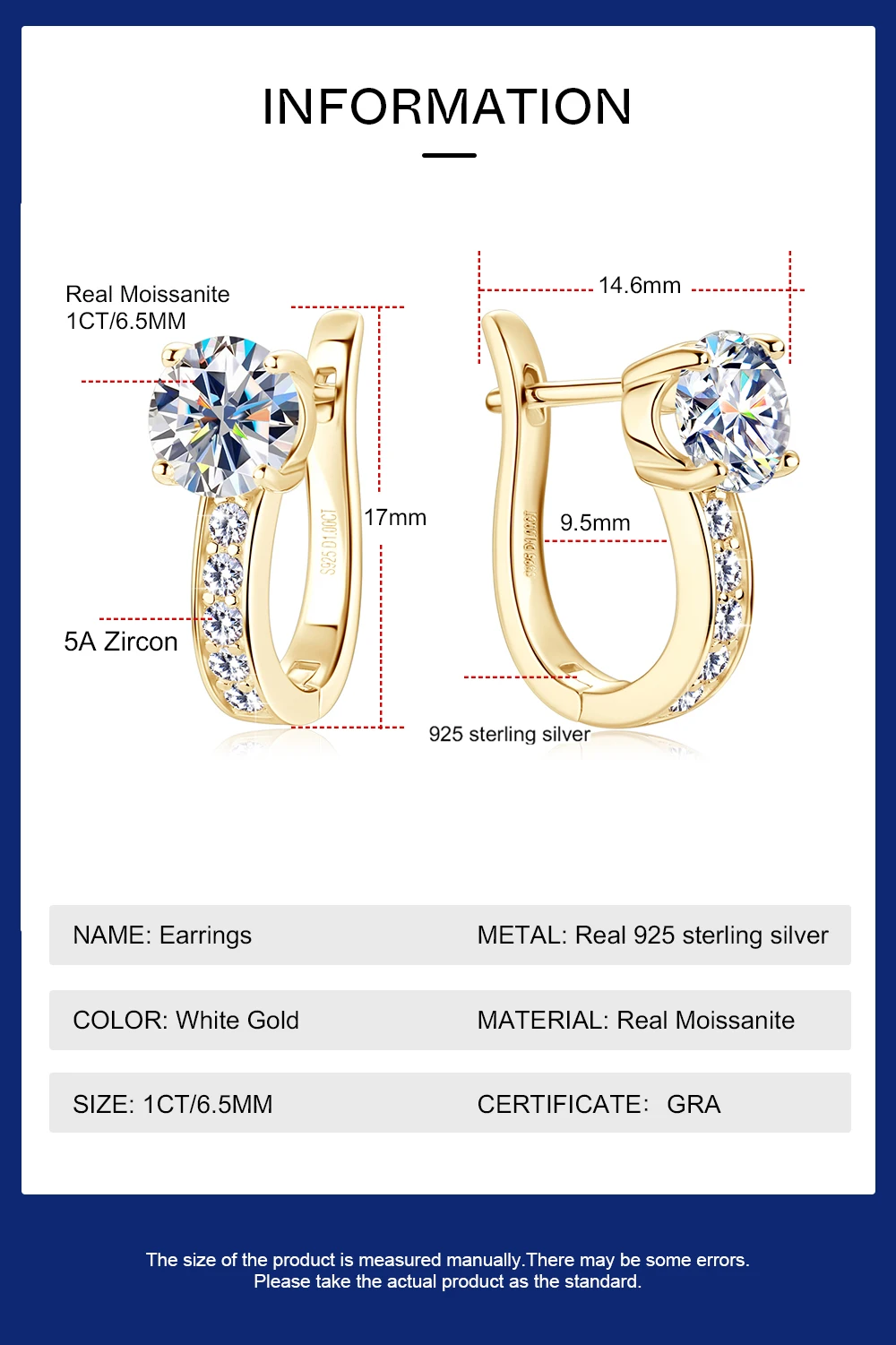 1ct Moissanite Hoop Earrings 6.5mm D Color VVS1 Women's Diamond Earring Original Certified 925 Sterling Silver Jewelry