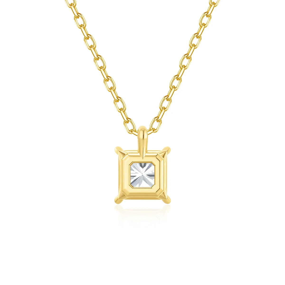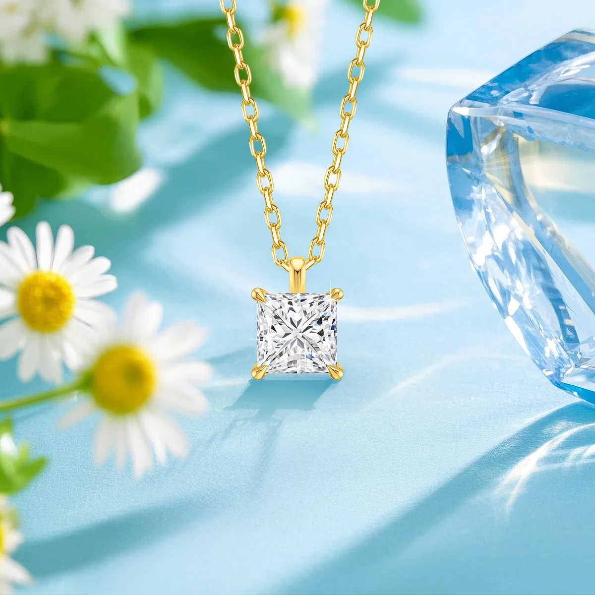 This 2-carat princess cut moissanite necklace, set in 14k gold, offers exceptional brilliance and durability, making it an ideal choice for wedding and engagement jewelry. Certified for quality, the necklace combines timeless elegance with a modern cut, enhancing its fiery sparkle. Perfect as a meaningful gift, it delivers luxury and sophistication suited for lifelong celebrations.
