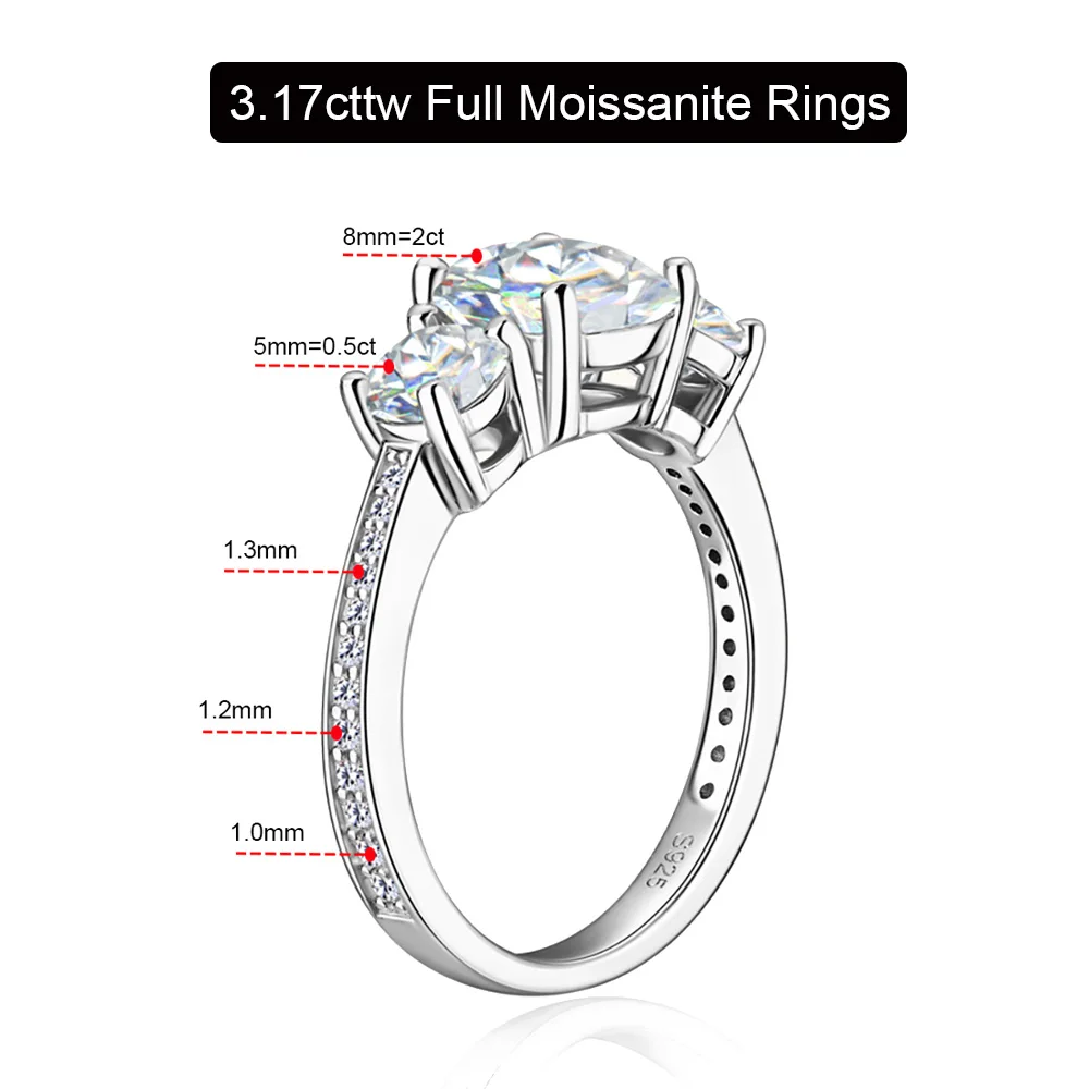 3.17ct D Color All Moissanite Rings For Women Wedding Bridal 100% S925 Sterling Silver Plated 18K