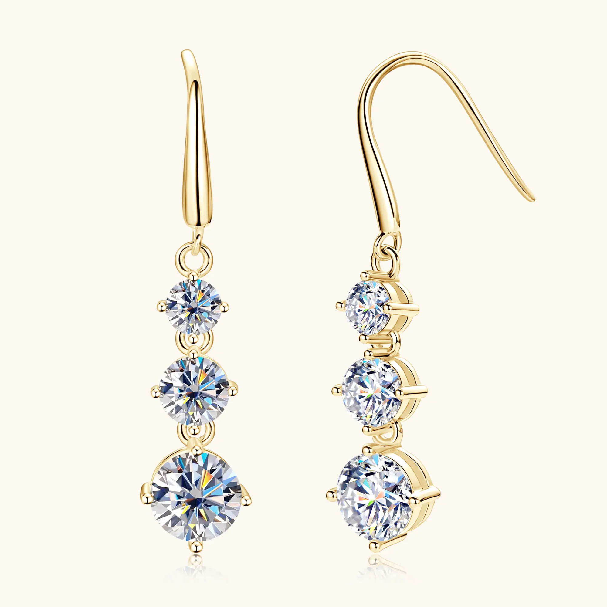 Experience timeless elegance with these 3.6CT moissanite drop earrings, expertly crafted to deliver exceptional sparkle and brilliance. Featuring lab-created moissanite stones in a stunning brilliant cut, these earrings offer the visual impact of fine diamonds at a fraction of the cost. Set in S925 sterling silver with 18k gold plating, they combine durability with luxurious aesthetics. Perfect for weddings, special occasions, or everyday sophistication, these versatile drops complement any style. The secure drop design ensures comfortable, all-day wear while the premium materials guarantee lasting beauty and resistance to tarnishing.