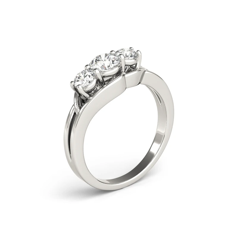 This three-stone moissanite ring showcases timeless elegance in authentic 925 sterling silver. The trio of brilliant round-cut moissanite stones delivers exceptional sparkle and clarity, rivaling traditional diamonds while offering superior value. Moissanite's remarkable durability—ranking 9.25 on the Mohs hardness scale—ensures your ring maintains its luminous beauty for generations. The classic three-stone setting carries profound symbolism, representing cherished moments and enduring commitment. Perfect as an engagement ring, wedding band, or treasured gift, this piece combines expert craftsmanship with sophisticated design. Sterling silver's lustrous finish complements the stones' radiant brilliance, creating a stunning focal point for any occasion.