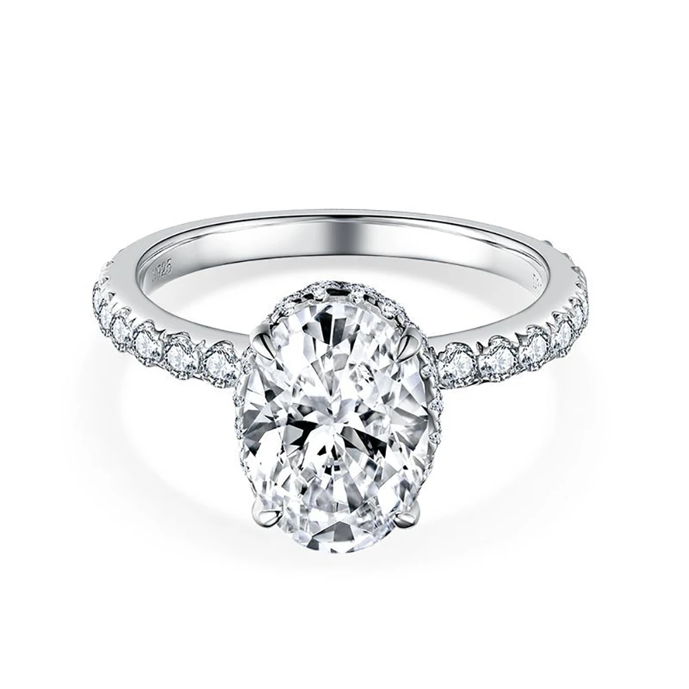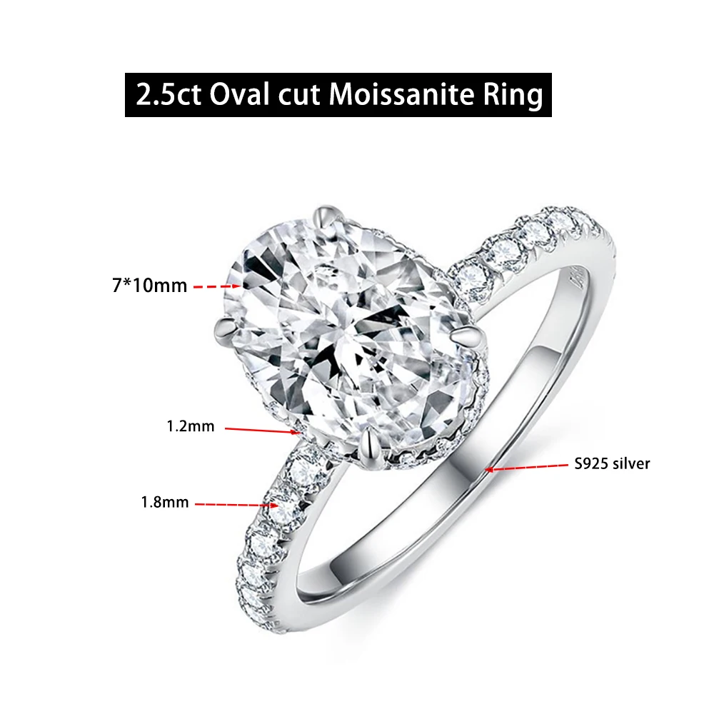 3ct Oval Cut D Color VVS1 Moissanite Rings For Women 100% S925 Sterling Silver Plated 18K