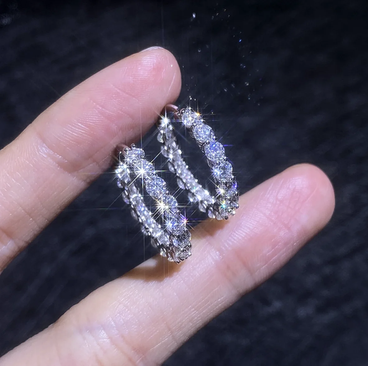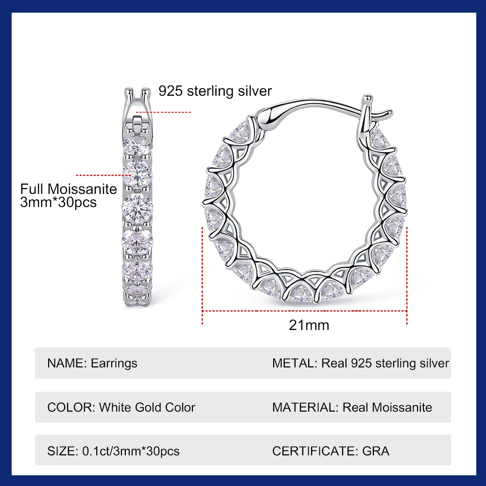 3mm All Moissanite Hoop Earrings 925 Sliver Plated White Gold Earring for Women Classic Sparkly Bridal Wedding Jewelry