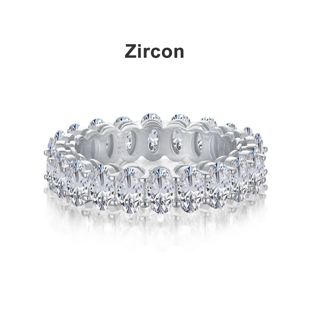 Sophisticated Brilliance: The Oval-Cut Eternity Band Elevate your jewelry collection with the timeless elegance of the Oval Moissanite Eternity Band. Featuring a continuous row of 3x5mm oval-cut stones, this band offers a unique "hall of mirrors" effect that elongates the finger and provides a more modern silhouette than traditional round cuts. Each stone is D-color and VVS1-clarity, offering a fire that rivals the finest diamonds.