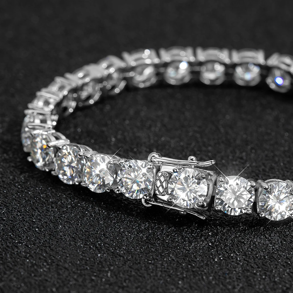 Bold Brilliance, Unmatched Fire Command attention with our 6.5mm Moissanite Tennis Bracelet. Featuring a continuous strand of 1-carat (6.5mm) round brilliant-cut stones, this bracelet delivers a massive "ice" look that rivals the most expensive diamond tennis chains. Crafted with a classic 4-prong setting, it is designed to maximize light refraction and provide a secure, high-end feel for both men and women.