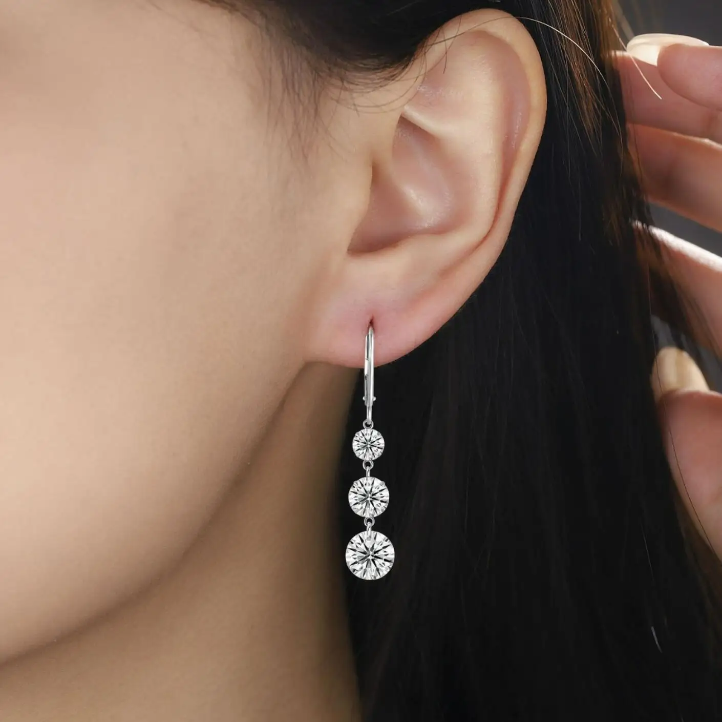 Elevate your jewelry collection with these stunning 7-carat moissanite dangle earrings, crafted from premium 925 sterling silver. Featuring D-color lab diamonds that rival natural stones in brilliance and clarity, these long hoops deliver exceptional sparkle without the premium price tag. Perfect for weddings, engagements, or everyday luxury, they combine timeless elegance with modern sophistication. The secure dangle design ensures comfortable all-day wear, while the fine jewelry craftsmanship guarantees lasting beauty. An investment piece that captures light beautifully and complements any occasion.