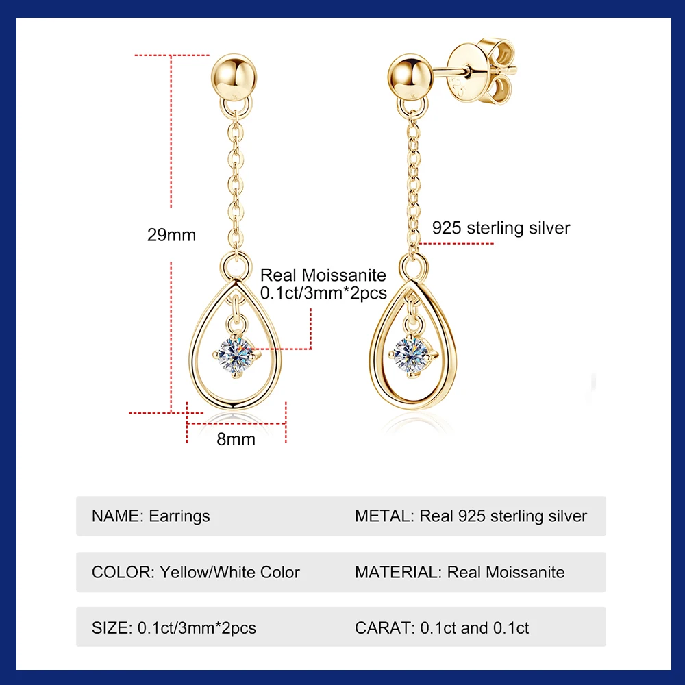 Earring Type: drop earrings,Moissanite Dorp Earrings