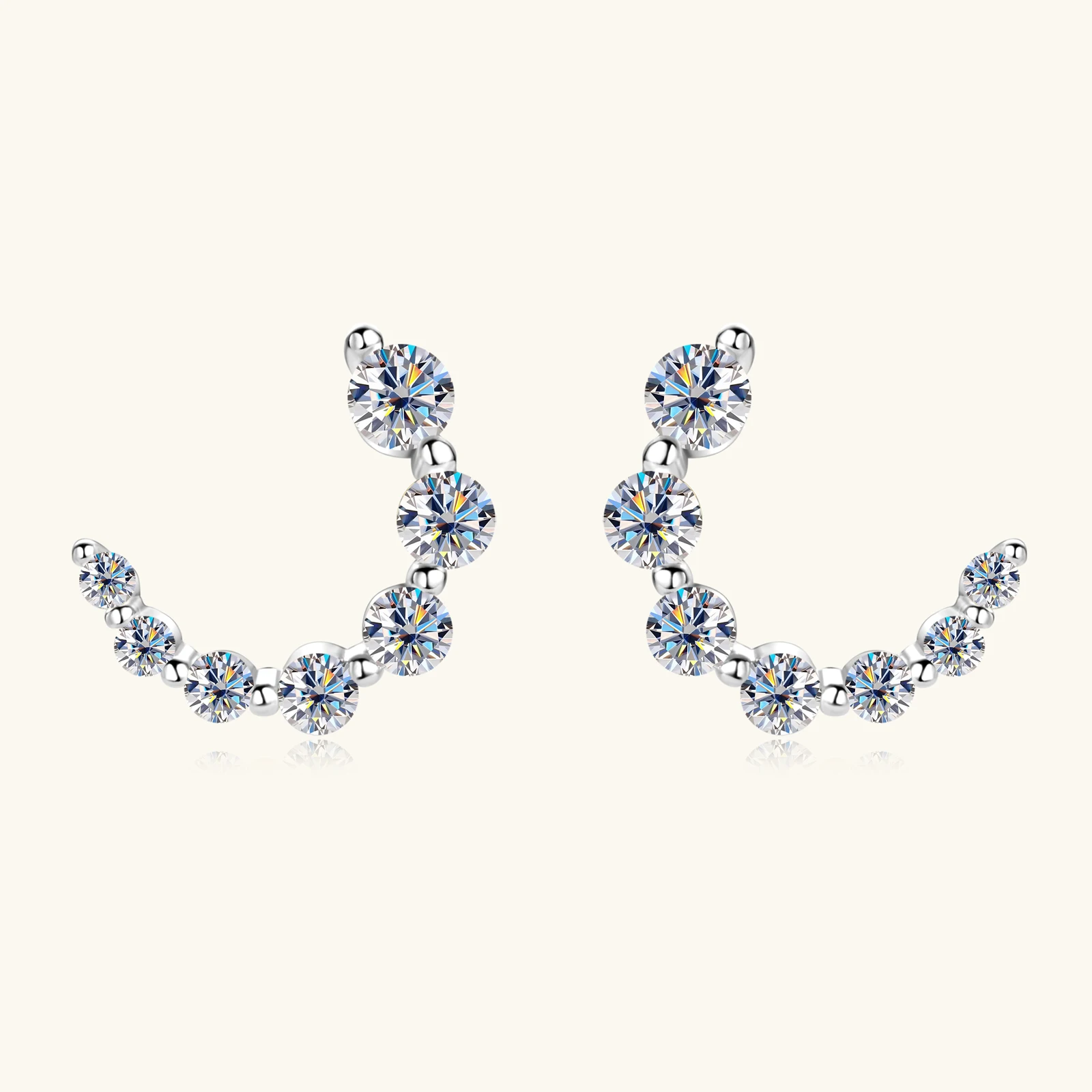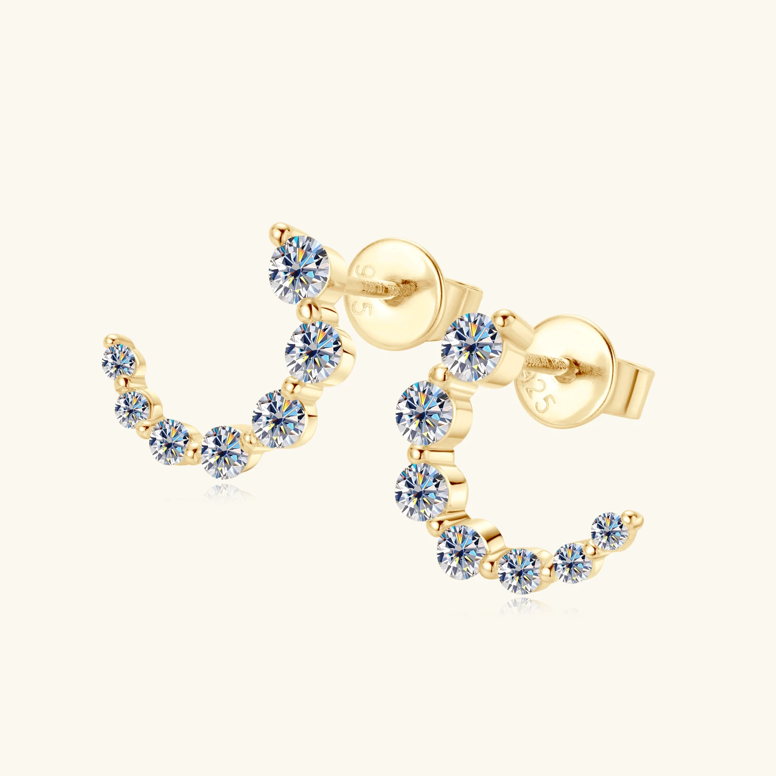 Elevate your jewelry collection with these sophisticated 925 sterling silver moissanite earrings, featuring an elegant C-shaped semicircular design. Crafted from premium materials, these earrings showcase brilliant moissanite stones that deliver exceptional sparkle and clarity comparable to diamonds. The contemporary curved silhouette offers a modern aesthetic while maintaining timeless appeal, making them versatile for both everyday wear and special occasions. Perfect for those seeking luxury accessories that combine durability with refined style, these earrings are an investment in quality craftsmanship and enduring beauty.