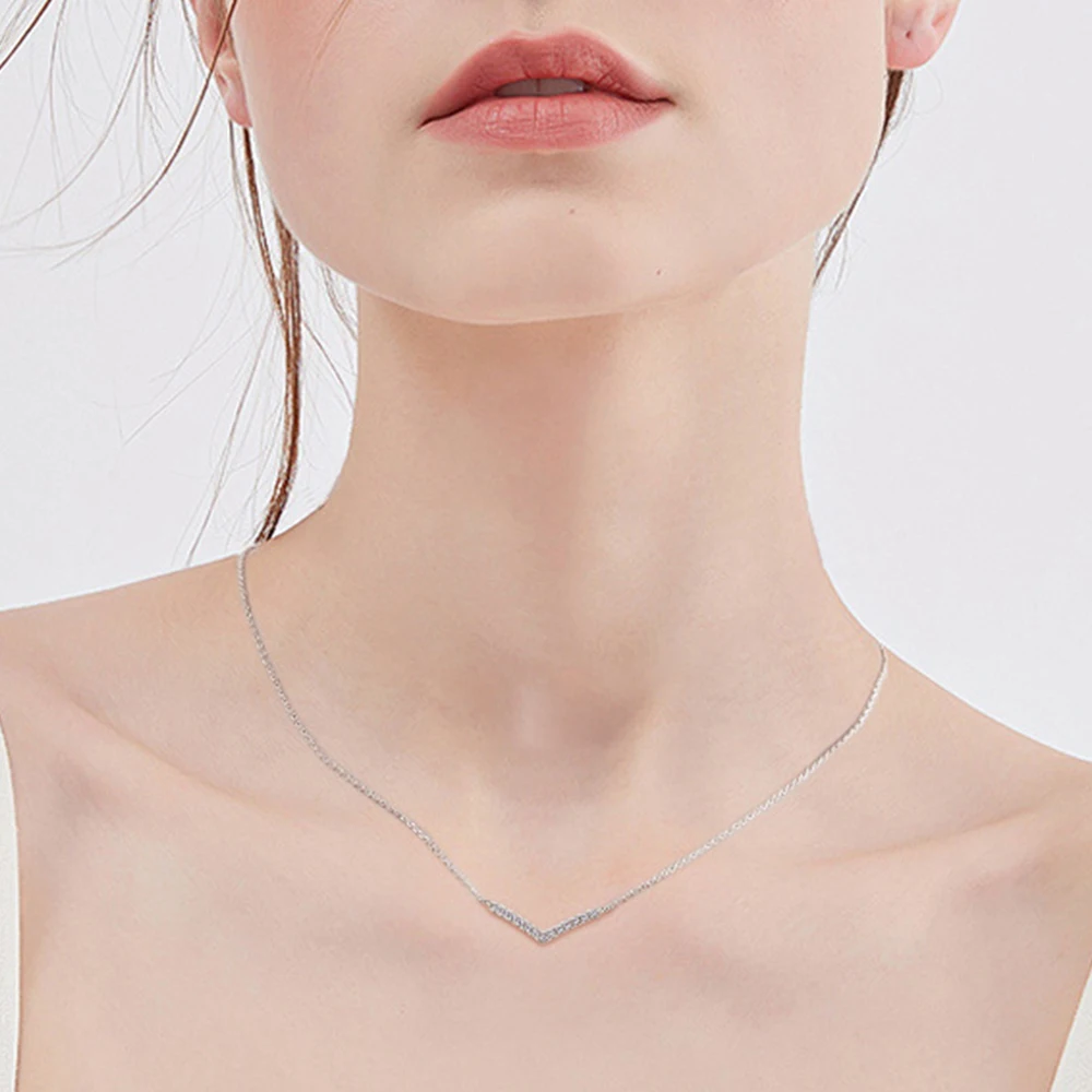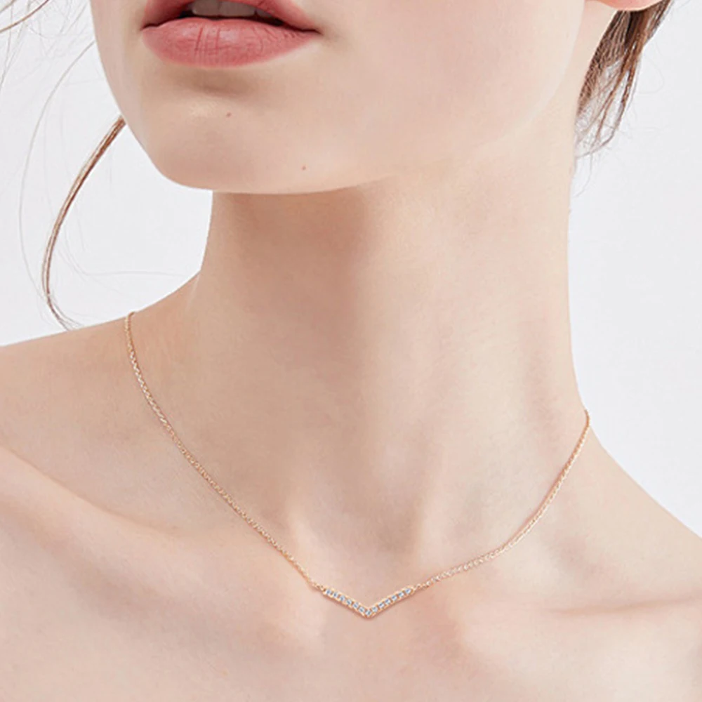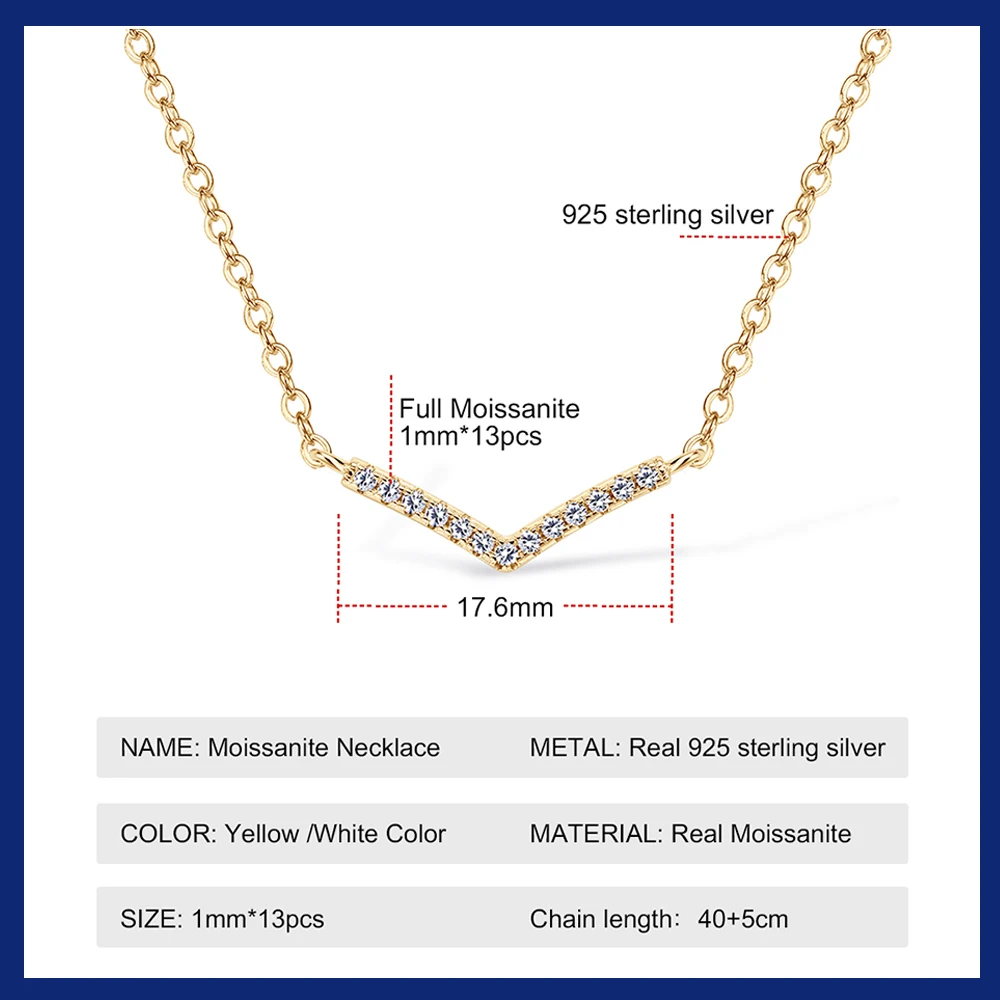 925 Sterling Silver Moissanite V-shaped Necklaces For Women 18K White/Yellow Gold Plated Choker Necklace Dainty Jewelry Gifts