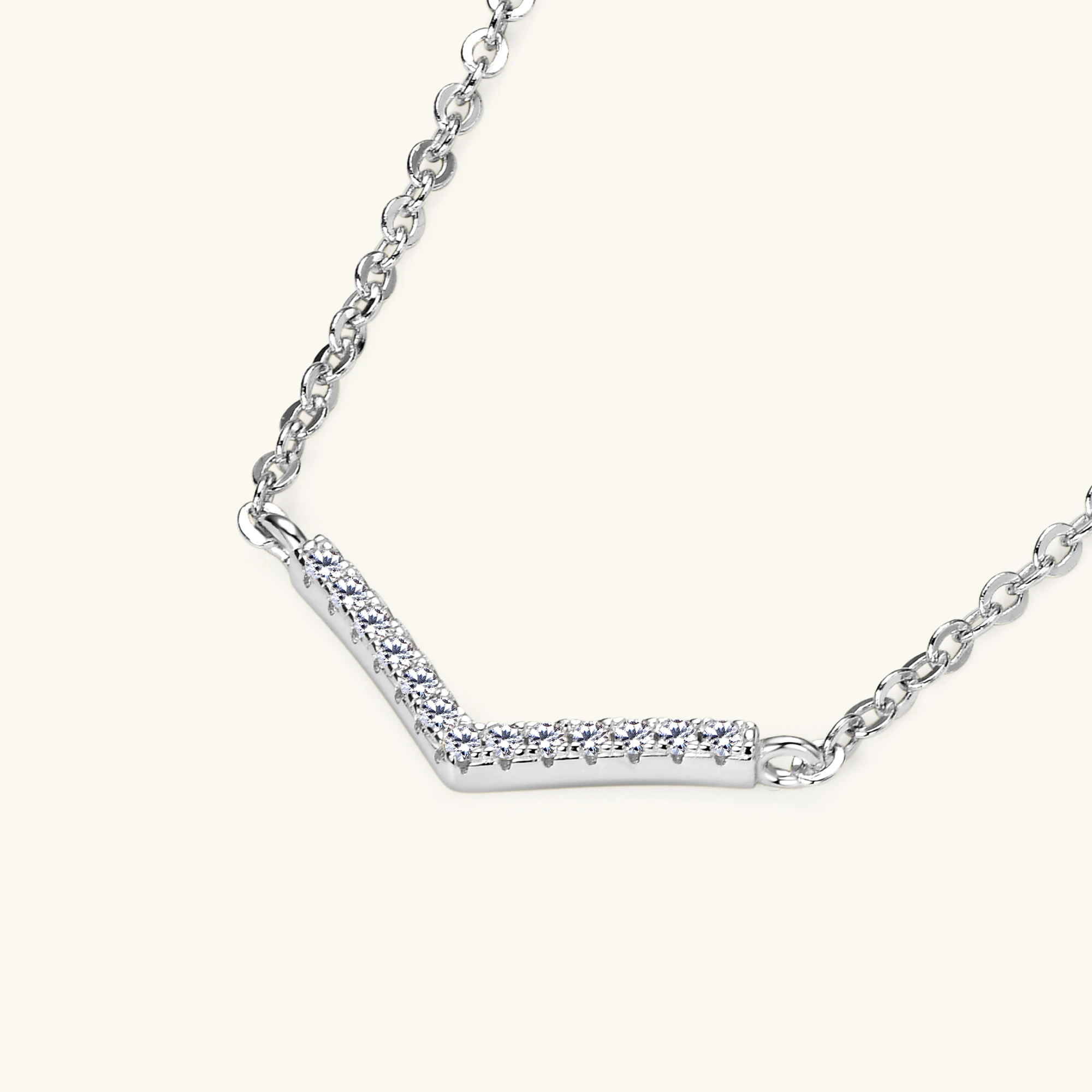 Break the mold with this fearless V-shaped moissanite choker that celebrates bold self-expression. Constructed from 925 sterling silver and adorned with 18K white or yellow gold plating, this necklace showcases brilliant lab-created moissanite with unrelenting fire. The striking angular design sits provocatively at the throat, commanding attention from everyone in the room. Wear it solo for maximum impact or layer it with pieces that match your rebellious spirit. A daring gift for the woman who refuses to compromise on style or substance.