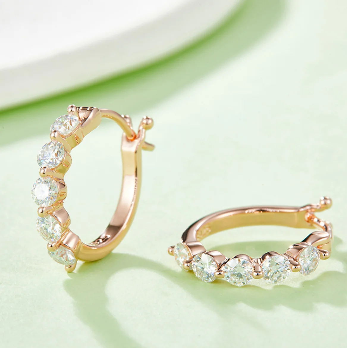 Elevate your jewelry collection with these sophisticated moissanite hoop earrings, expertly crafted for the discerning woman. Featuring lab-created moissanite stones that rival diamonds in brilliance and clarity, these 3mm earrings deliver exceptional sparkle without compromise. The rose gold finish pairs beautifully with the 925 sterling silver base, enhanced with 18K plating for lasting durability and a luxurious appearance. Perfect for weddings, special occasions, or everyday elegance, these classic hoops offer timeless style with modern sophistication. A smart investment in quality jewelry that combines ethical sourcing with stunning visual impact.