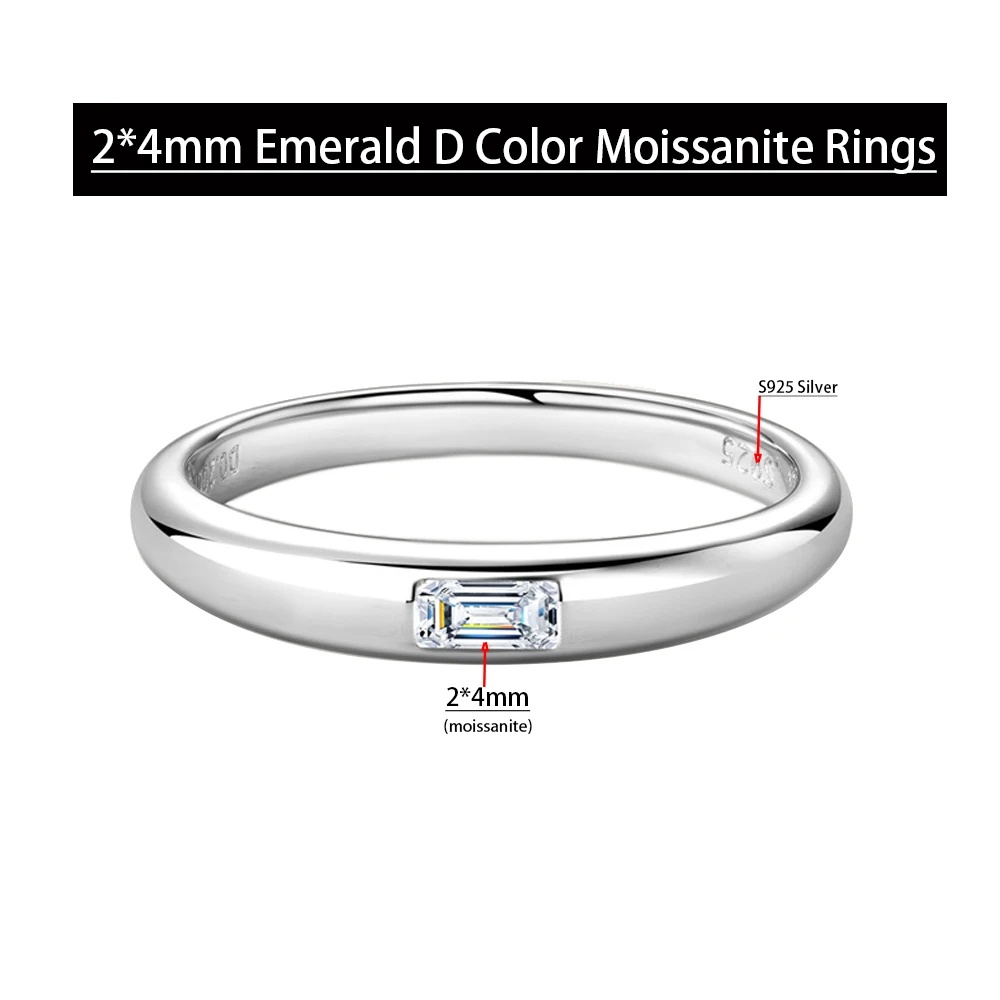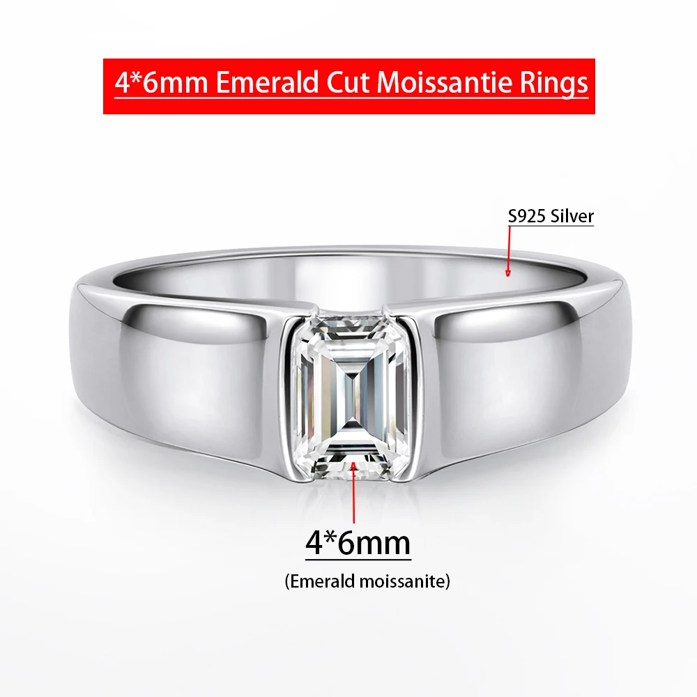 D Color 4*6mm Emerald Cut Moissanite Diamond Rings Women Man Wedding Bridal S925 Sterling Silver Rings Anniversary Gift