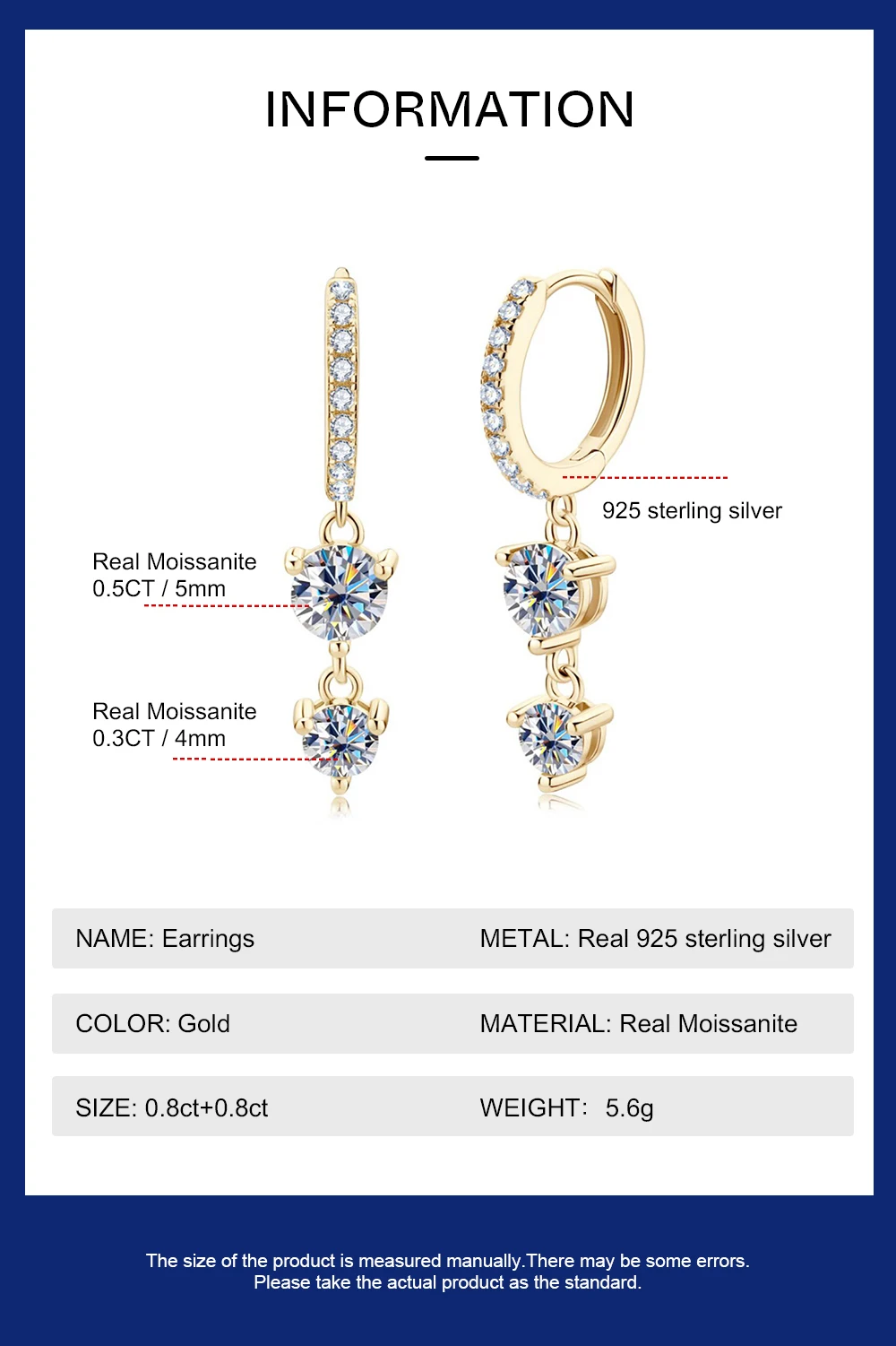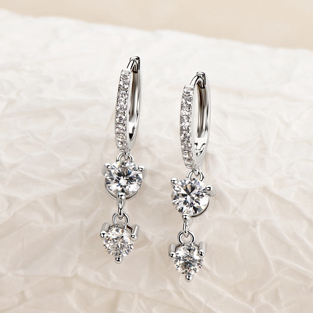 These D color moissanite drop earrings represent a pinnacle of fine jewelry craftsmanship, featuring 1.6 carats of premium stones set in authentic S925 sterling silver. D color moissanite achieves the highest colorless grade, delivering exceptional optical performance with brilliant sparkle and fire. The drop silhouette offers versatile styling for both formal occasions and refined everyday wear. Moissanite's exceptional hardness ensures these earrings withstand daily use while maintaining their luminous beauty indefinitely. An intelligent investment for those seeking luxury, durability, and timeless sophistication in a single piece.