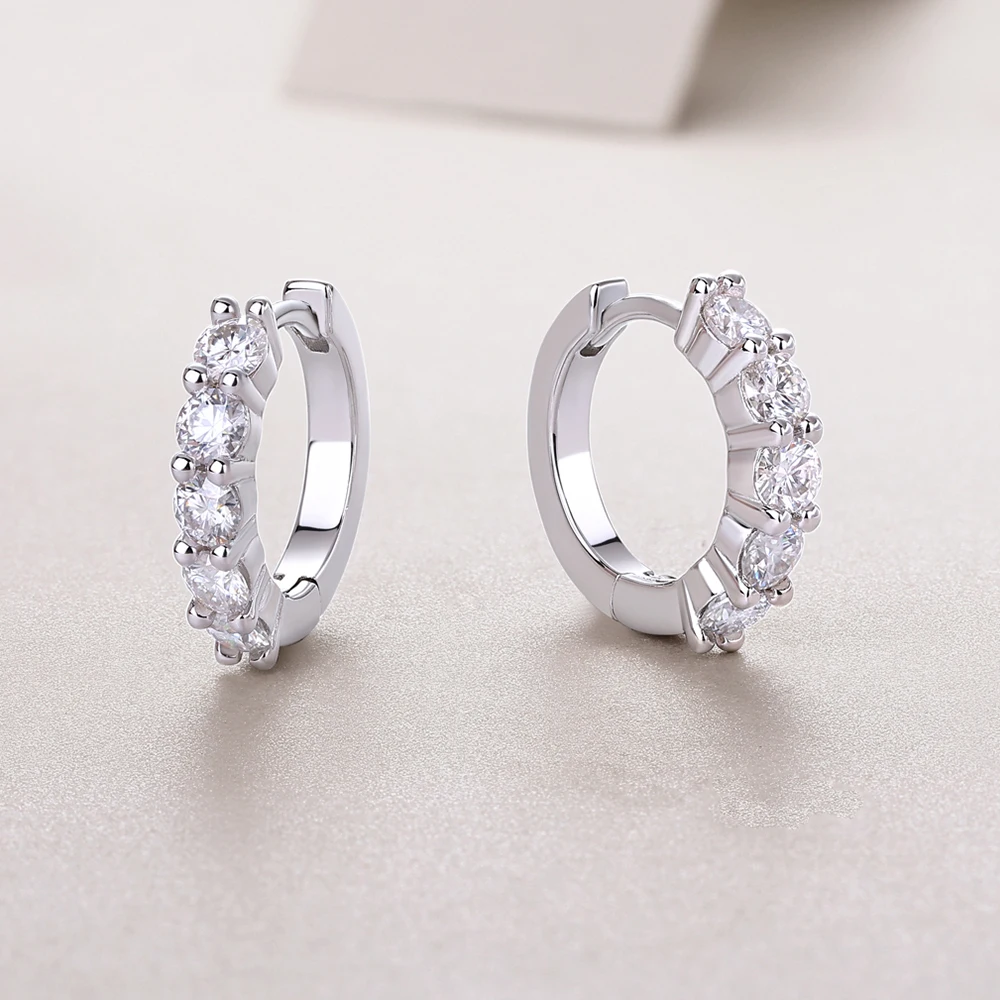 D Color Moissanite Earrings 925 Sterling Sliver Plated White Gold Hoop Earring For Women Classic Wedding Party Jewelry