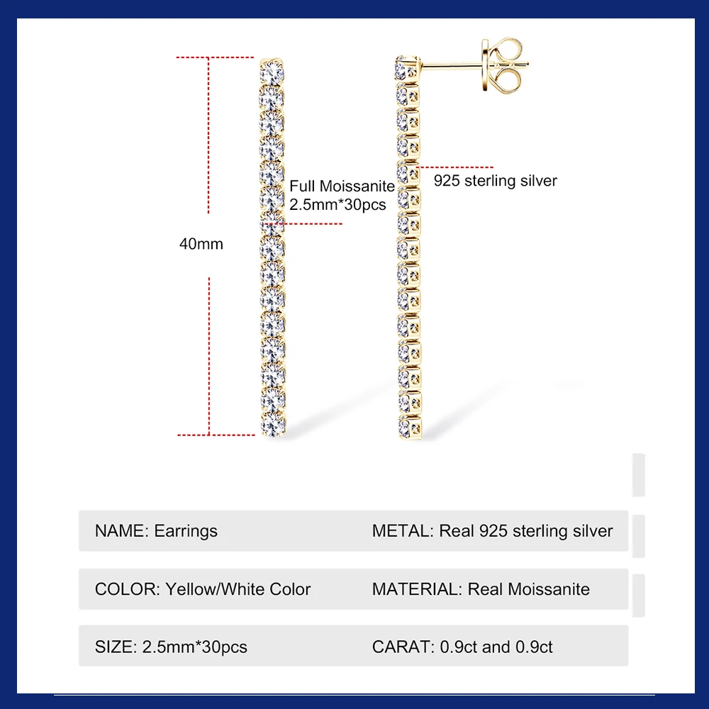 Dangle Earrings 925 Sterling Silver Gold Silver Color Long Tassel Drop Earring for Women 2.5mm Moissanite Party Wedding Jewelry