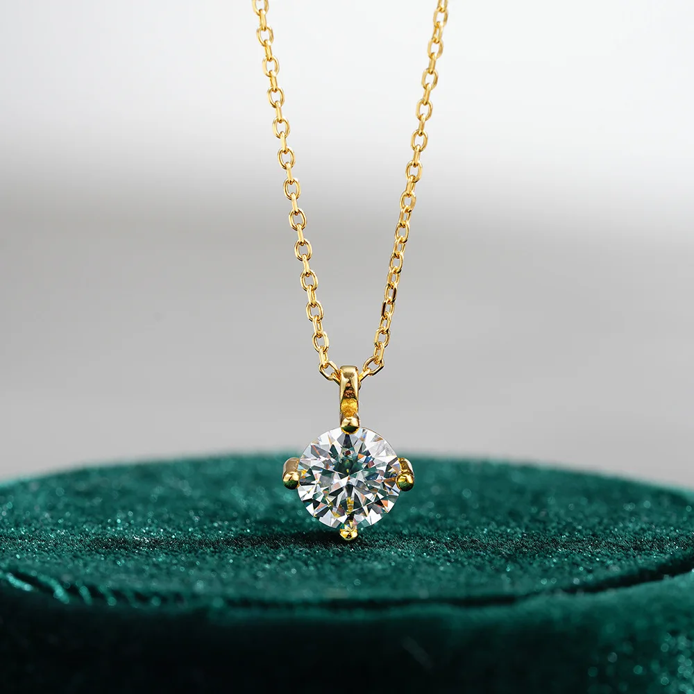 Diamond Moissanite 1ct Pendant Necklace Women's 14K Gold Four-Claw Classic Clavicle Chain Luxury Wedding Fine Jewelry