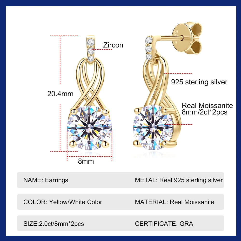Earring Type: drop earrings,Moissanite Dorp Earrings