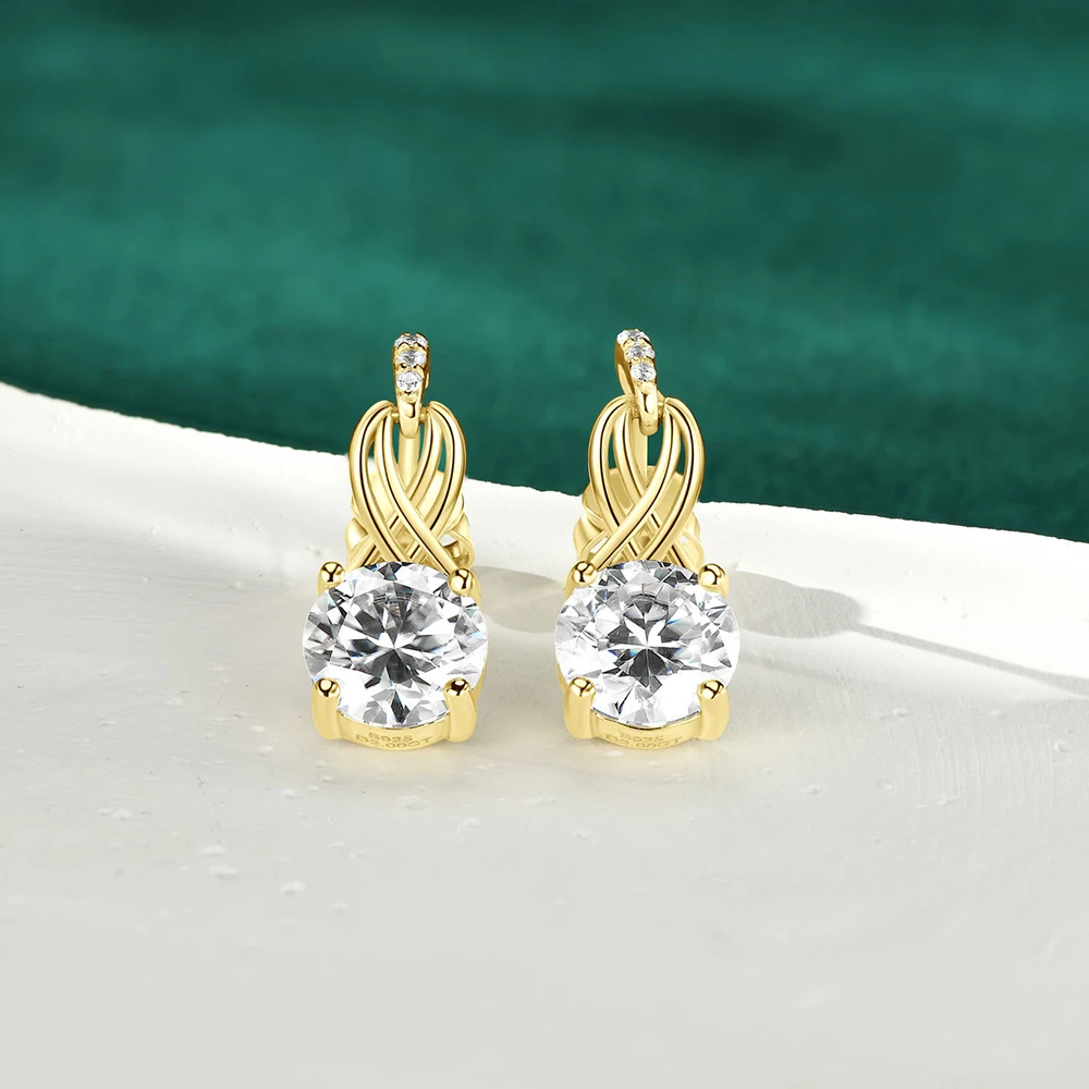 Elevate your bridal collection with these stunning moissanite drop earrings, featuring 2 carats total weight of lab-created brilliance. Crafted from S925 sterling silver with 18k gold plating, these earrings showcase a brilliant cut that captures and reflects light with exceptional sparkle. GRA certified for quality assurance, they offer the luxury appearance of diamonds at a fraction of the cost. Perfect for weddings, engagements, or everyday elegance, these versatile pieces combine timeless design with modern sophistication. The secure drop setting ensures comfortable, all-day wear while maintaining their radiant beauty.