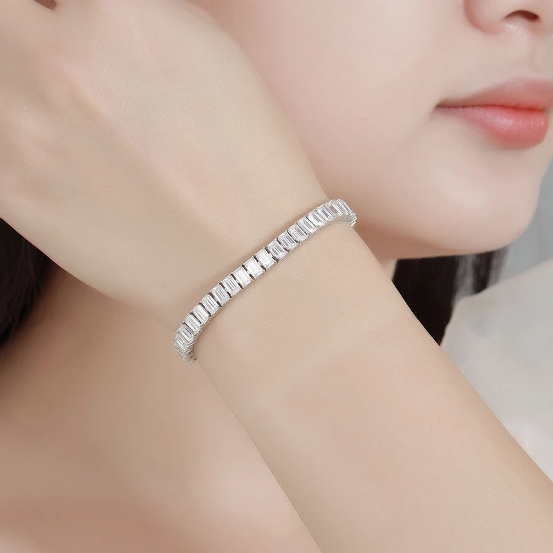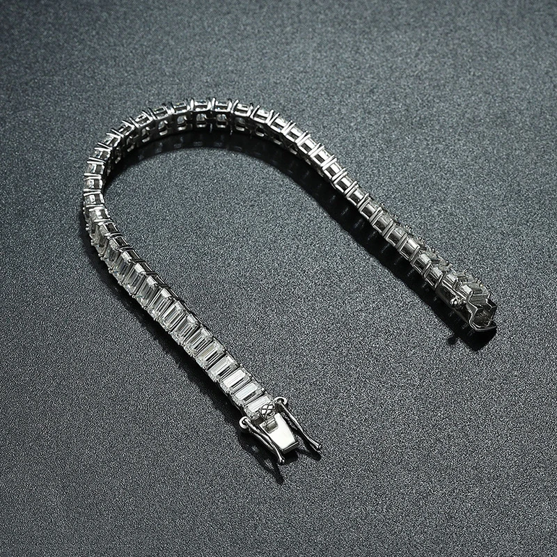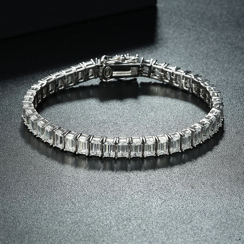 Discover timeless sophistication with this emerald cut moissanite tennis bracelet, designed for anyone who appreciates fine jewelry. Featuring lab-created moissanite stones set in authentic 925 sterling silver, this bracelet delivers dazzling sparkle and durability at an accessible price point. The classic tennis bracelet silhouette flatters all wrist sizes and complements both casual and formal looks. Whether you're treating yourself or gifting someone special, this versatile piece radiates elegance and confidence. Enjoy the beauty of luxury jewelry without compromise—a bracelet that truly celebrates your personal style.