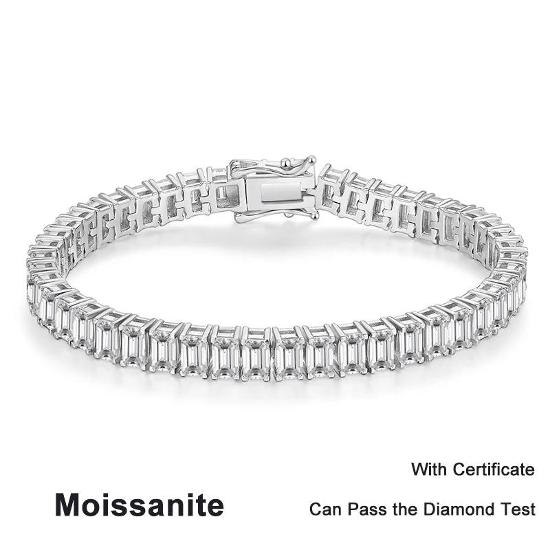 Emerald Cut Moissanite Tennis Bracelets for Woman Man 925 Sterling Silver Lab Diamond Hand Bracelet Women's Men Bracelets