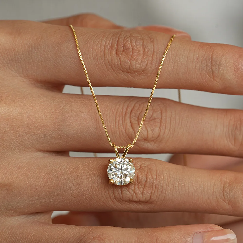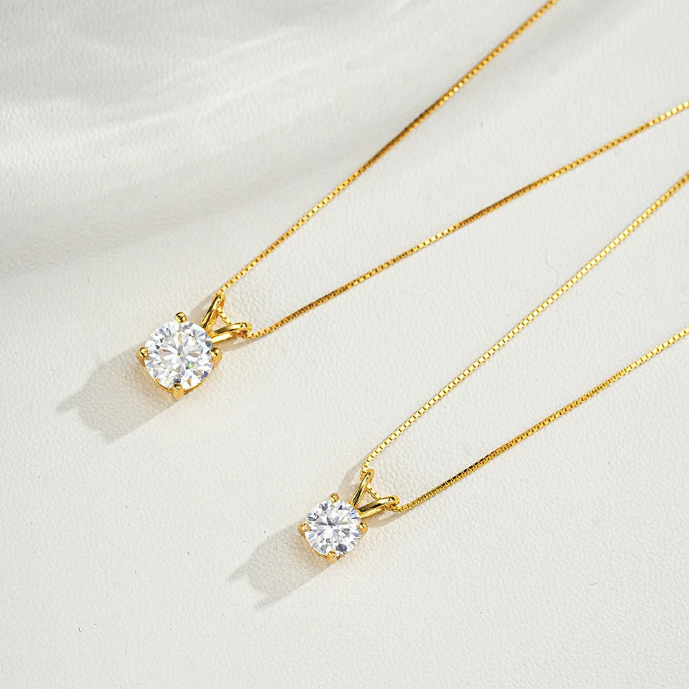Four-claw Pendant for Women 1ct Diamond Moissanite Necklace Classic 14K Gold Elegant Wedding Fine Jewelry Gift