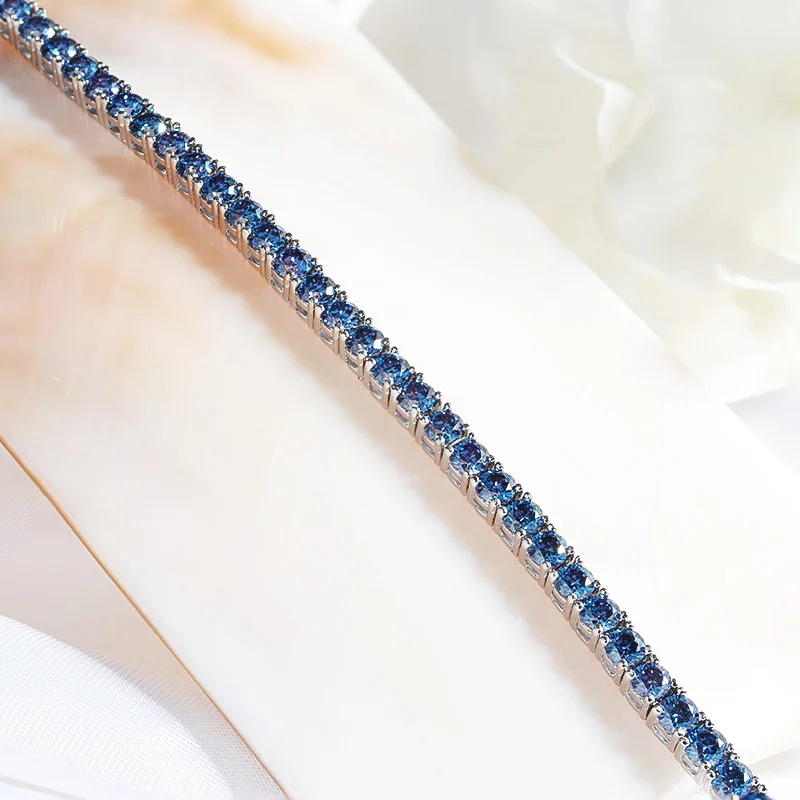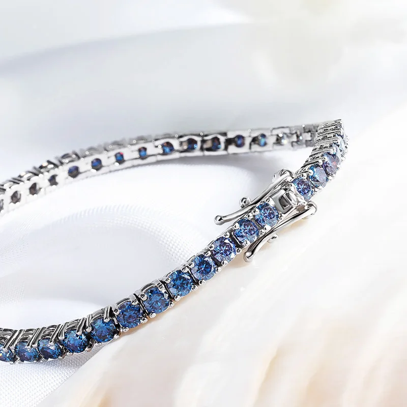 Radiate sophistication with this exquisite moissanite tennis bracelet. Crafted from premium 925 sterling silver, it showcases brilliant lab-created diamonds that capture light with mesmerizing fire and sparkle. Choose your ideal width from 3mm, 4mm, 5mm, or 6.5mm to match your personal aesthetic. The vibrant colorful gem selections offer endless styling possibilities for both men and women. Each piece is GRA certified, guaranteeing exceptional quality and authenticity. Perfect for making a bold statement or layering with other pieces, this bracelet combines luxury appeal with everyday wearability. Invest in jewelry that turns heads and stands the test of time.