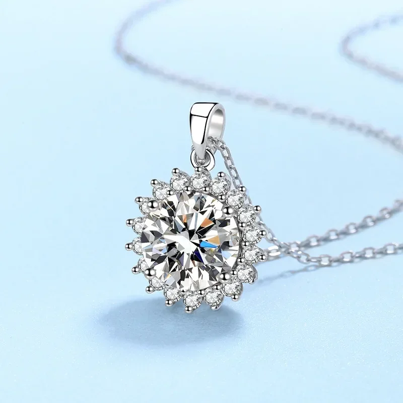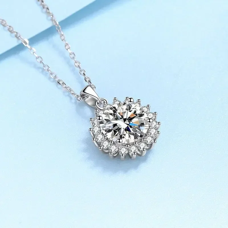Sparkle and shine with this gorgeous moissanite pendant necklace—the perfect gift to make her glow! Choose your favorite carat weight (0.5, 1, 2, or 5CT) and metal finish: elegant 18K white gold or prestigious PT950 platinum. Each stone dazzles with brilliant fire and exceptional clarity, catching light from every angle. Whether it's her birthday, your wedding day, or a romantic Valentine's surprise, this necklace delivers luxury and romance in one stunning package. She'll absolutely love wearing this timeless treasure!