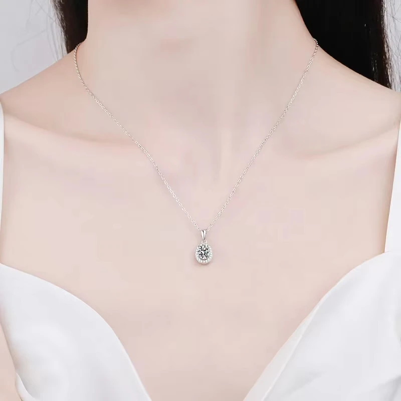 Make her heart skip a beat with this show-stopping necklace that's basically a love letter in jewelry form. Boasting a brilliant 1CT moissanite stone nestled in luxe 18K white gold and PT950 platinum, this pendant is your secret weapon for Valentine's Day, weddings, birthdays, or any "just because" moment. The moissanite sparkles with incredible fire and brilliance, catching every light and every compliment. Crafted with premium metals that promise lasting beauty, this is the kind of gift that becomes her go-to piece—the one she reaches for when she wants to feel absolutely radiant. Pure elegance meets playful luxury.