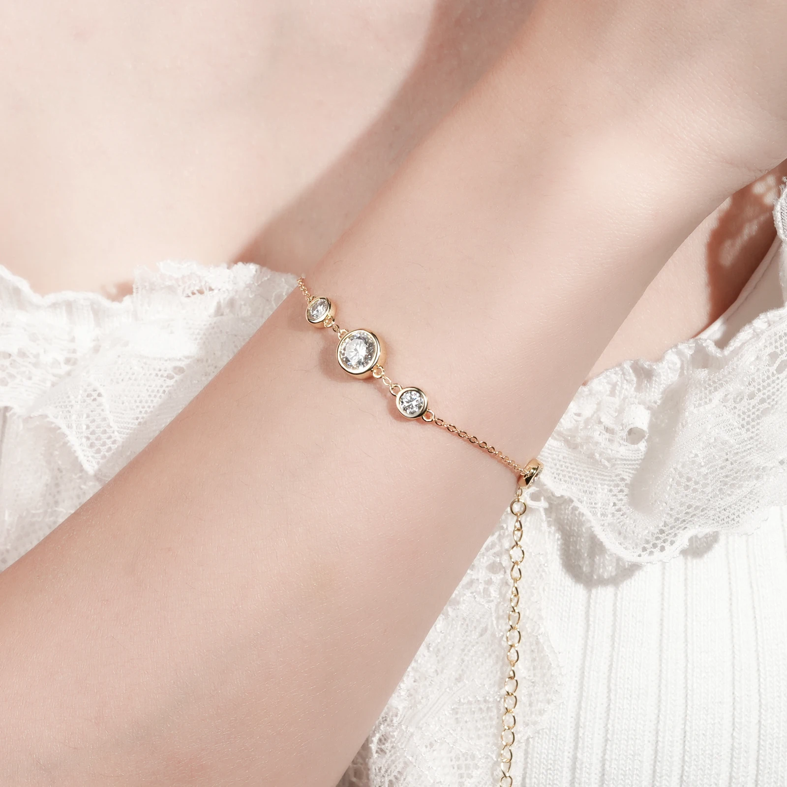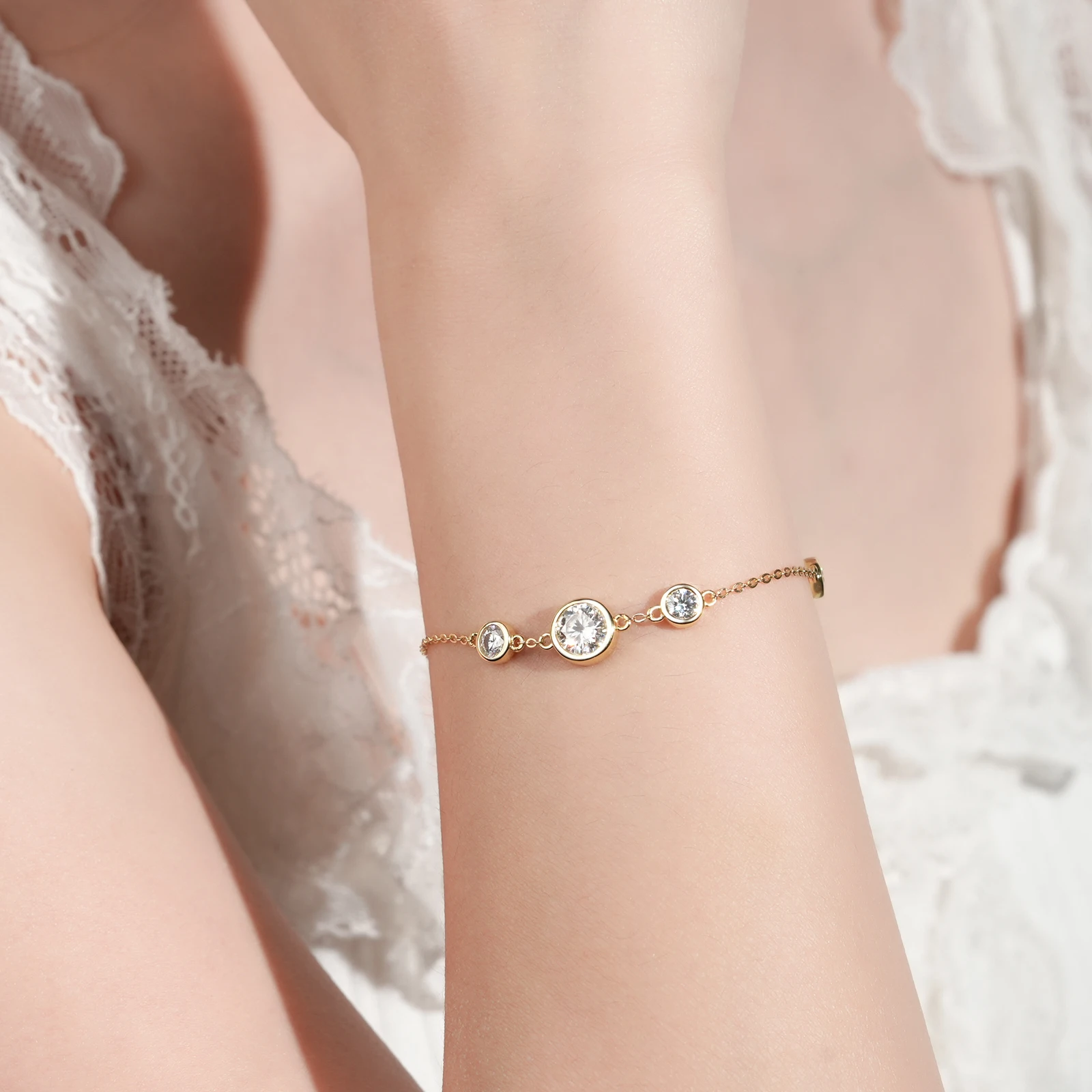 Indulge in luxury with our GRA Certified 6.5mm Moissanite Bracelet. Made with 925 silver and plated in 18k gold, this adjustable chain bracelet for women is a statement of elegance. Featuring a sparkling 6.5mm moissanite gemstone, it is a fine jewelry piece that is sure to elevate any outfit.