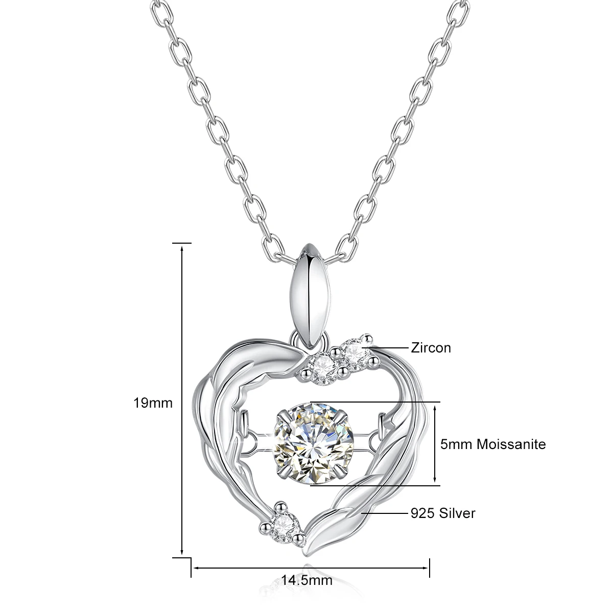 Heart Pendant Necklace Moissanite Women 100% 925 Sterling Silver