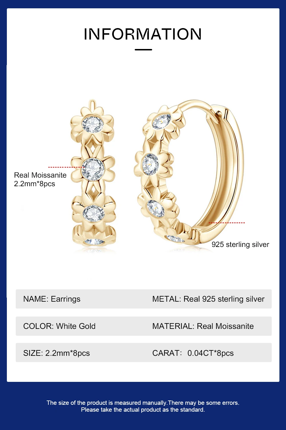 Hoop Earrings 2.2mm Moissanite Earrings for Women 925 Sterling Silver Piercing Earrings 2023 Trendy Jewelry Rose Gold Flower